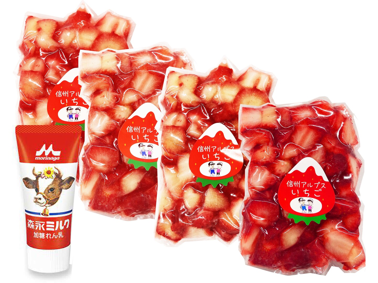 完熟のイチゴのみを早朝に収穫後、すぐに選別し真空パックし冷凍しております。
