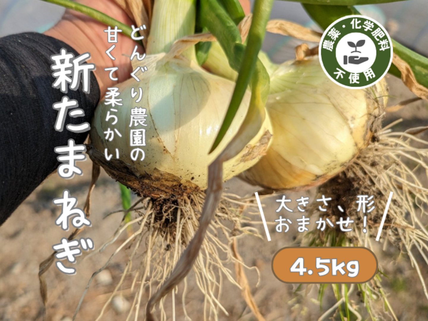 【農薬不使用】甘くて柔らかい新玉ねぎ(4.5kg)