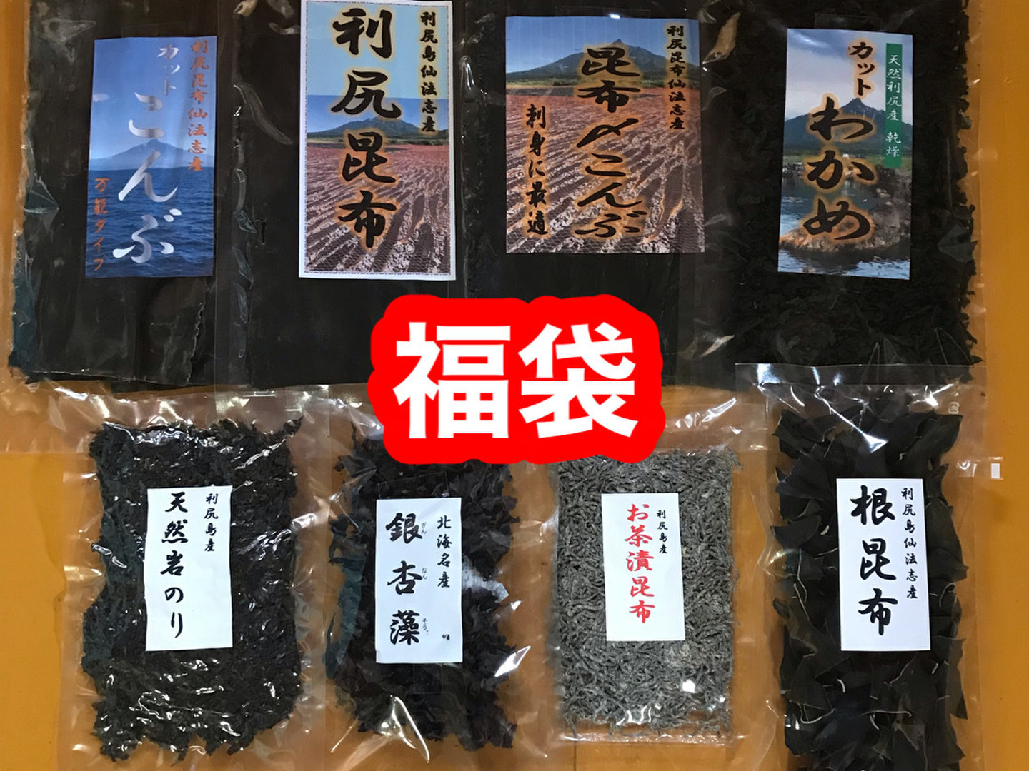 🔴北海道名産の海藻類(利尻昆布3点・根昆布・お茶漬け昆布・カットわかめ・銀杏藻・天然岩のり)の“なんと”8点入りが福袋で登場です!!