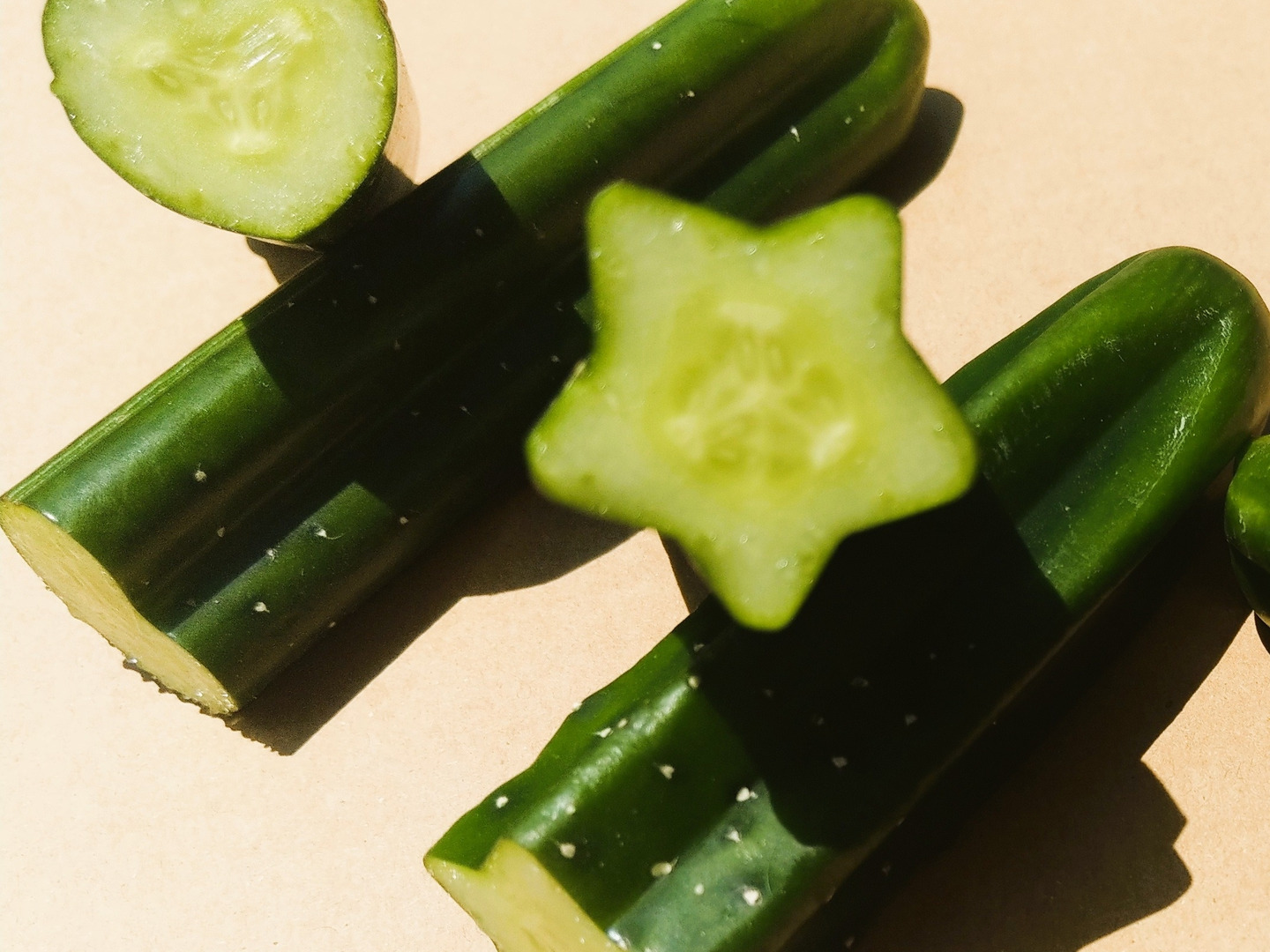 星形のきゅうり2本と、発送日に収穫した新鮮採れたてA品きゅうり1㎏の商品です☆