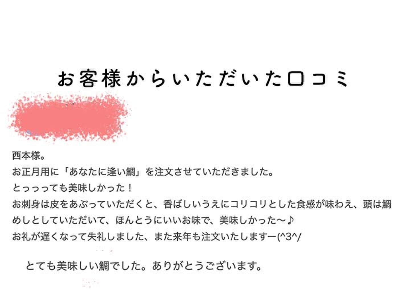 - 町に認められたジューシーで甘味溢れる鯛です。