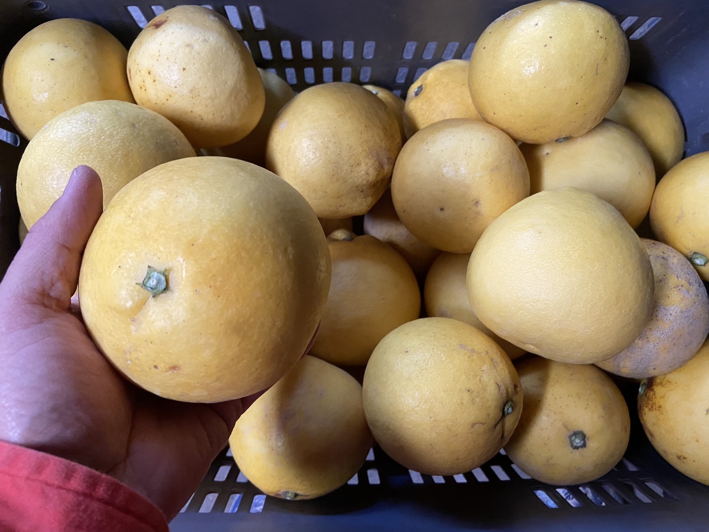 大きいのや小さいもの、きれいなものや傷のあるもの見た目のわるいものなどいろいろ混ざってます。大きさにもよりますが、3~4個で1kgです。
