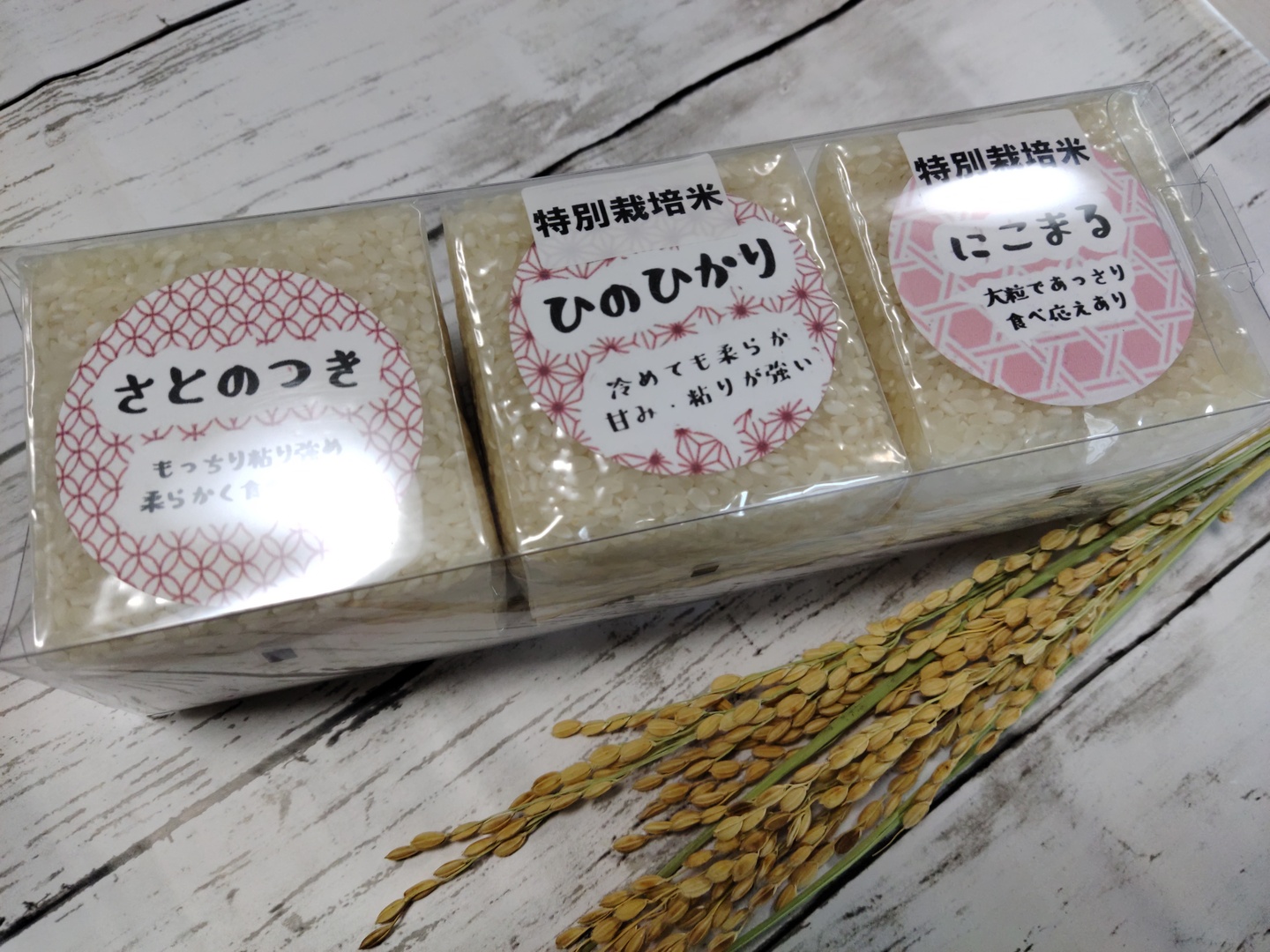 手土産にも✩それぞれ少しだけ♪精米食べ比べセット(ヒノヒカリ、にこまる、さとのつき 各300g)