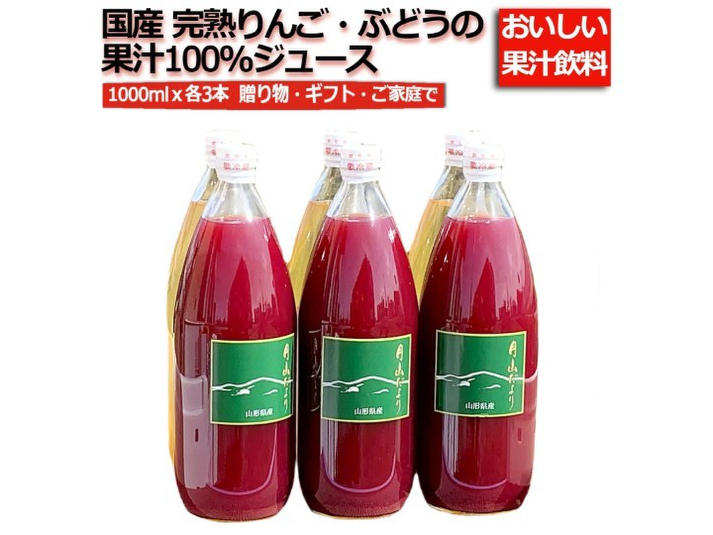 りんご、ぶどう100%ジュース 1,000ml 各3本
