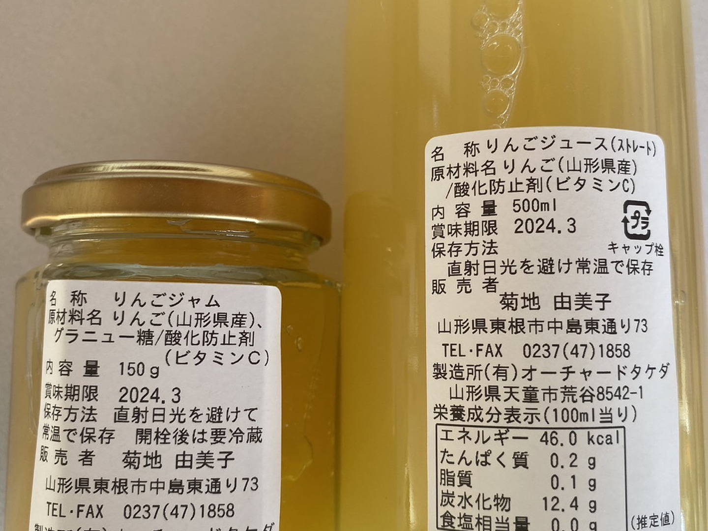 りんごジュース500ml2本、りんごジャム5本