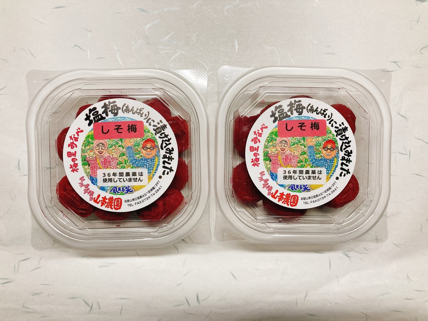 - 塩だけで漬け込みしたすっぱい梅干しで、しそで風味をプラスしました。