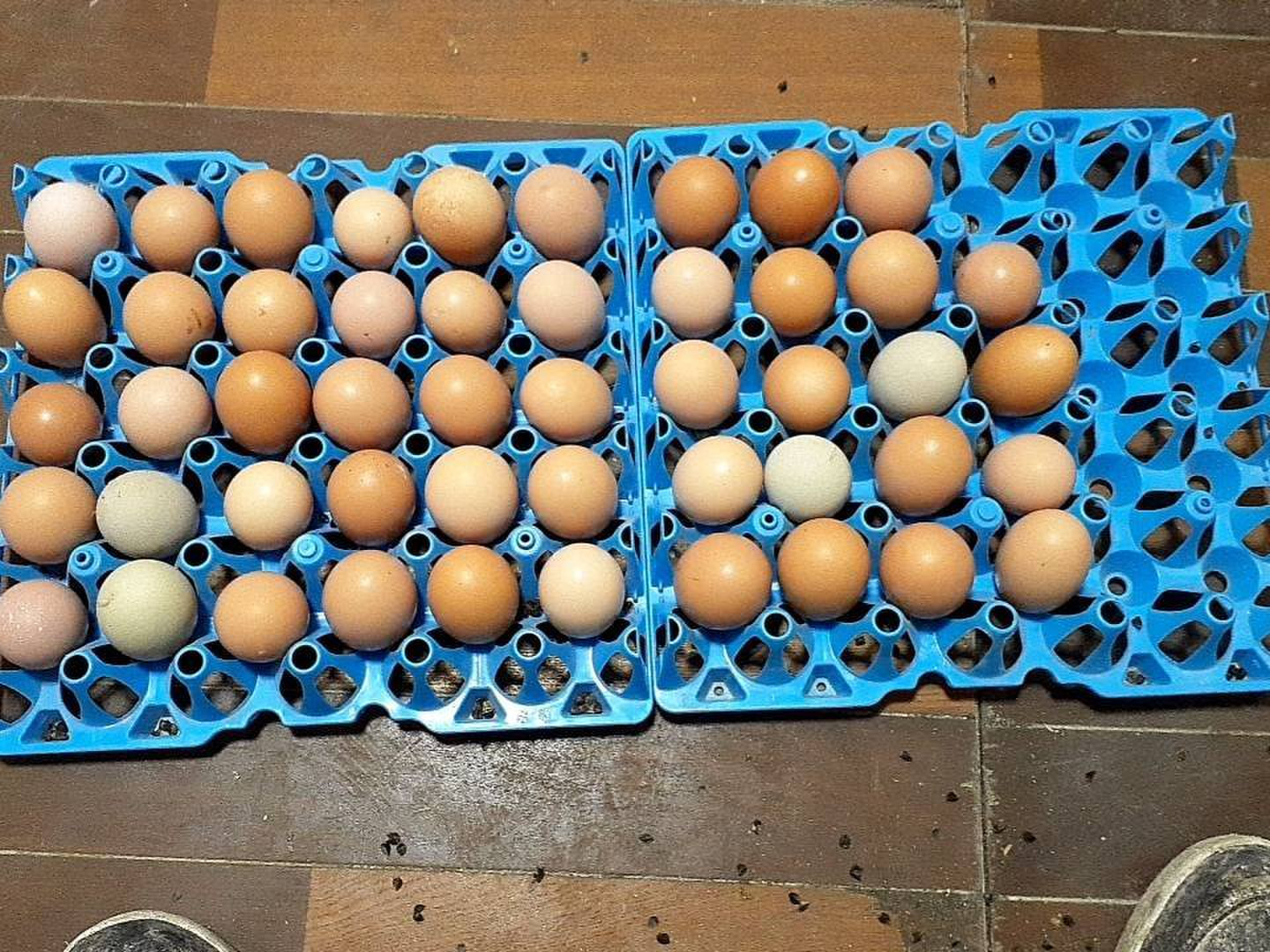 年間を通して地域のお米を中心に大豆、香高い常陸蕎麦、コーンを与えています。一羽あたり年間採卵数100個程度。コクがあって美味しい。