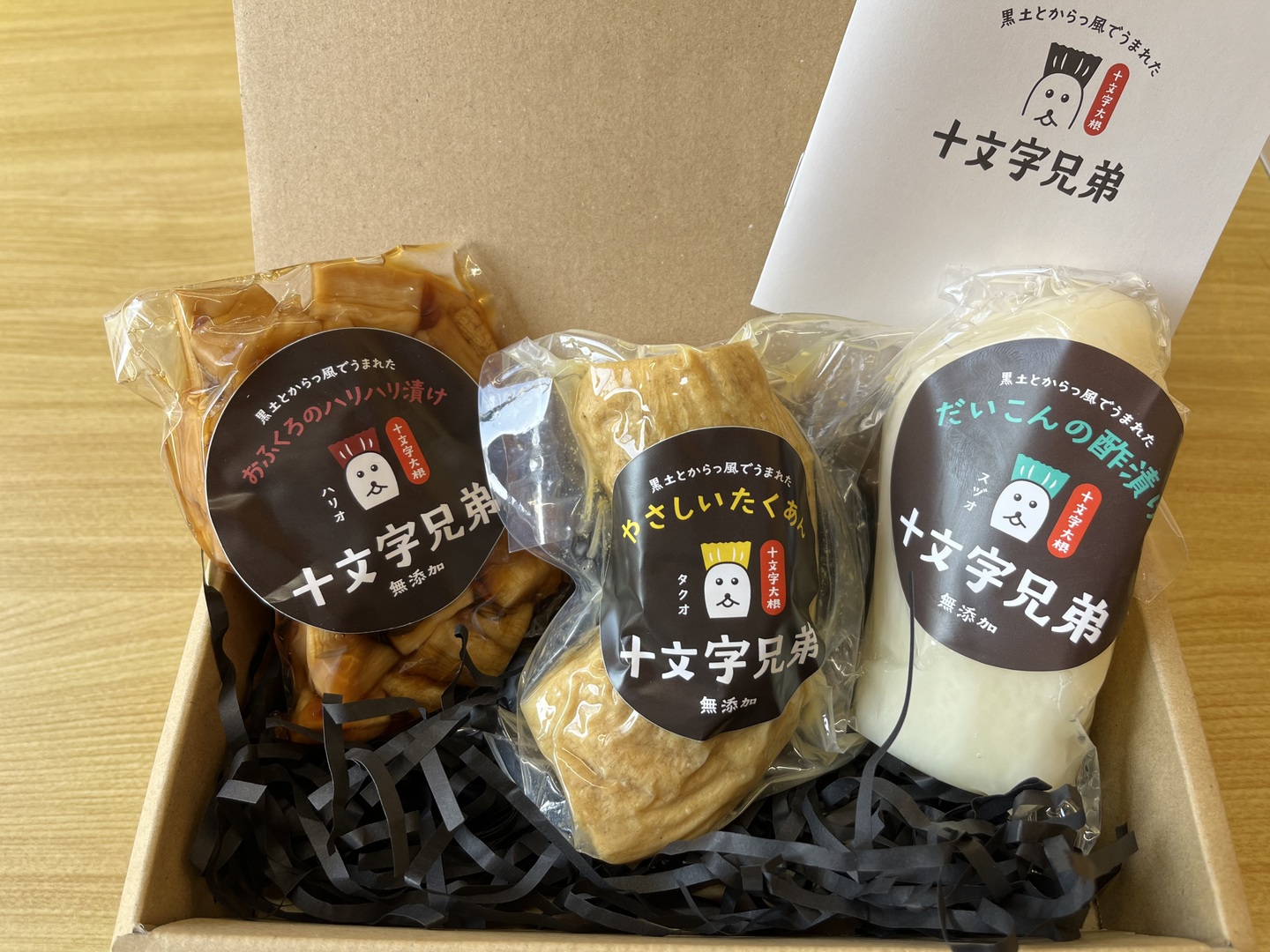 【お贈答用に最適!】良質な黒土と風が創った干し大根の絶品漬物「やさしいたくあん、ハリハリ漬、キムチ」のセット