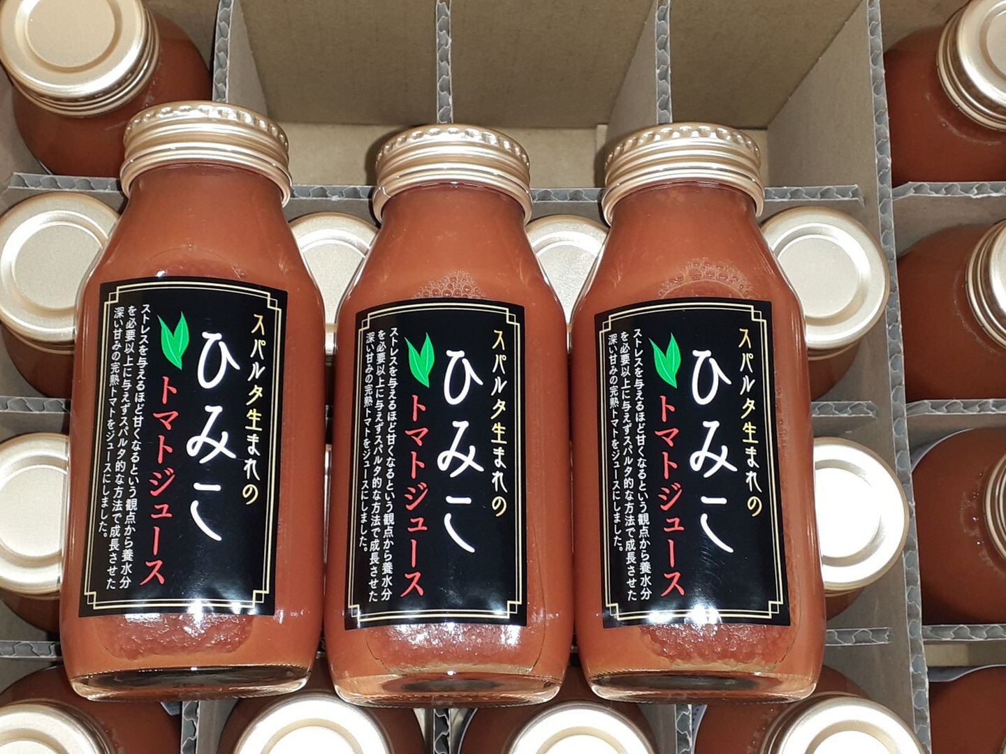 当社が自信を持って栽培したフルーツミニトマト「スパルタ生まれのひみこ」のみを100%使用した食塩不使用のトマトジュースです。上品な味わいで飲みやすいトマトジュースです。