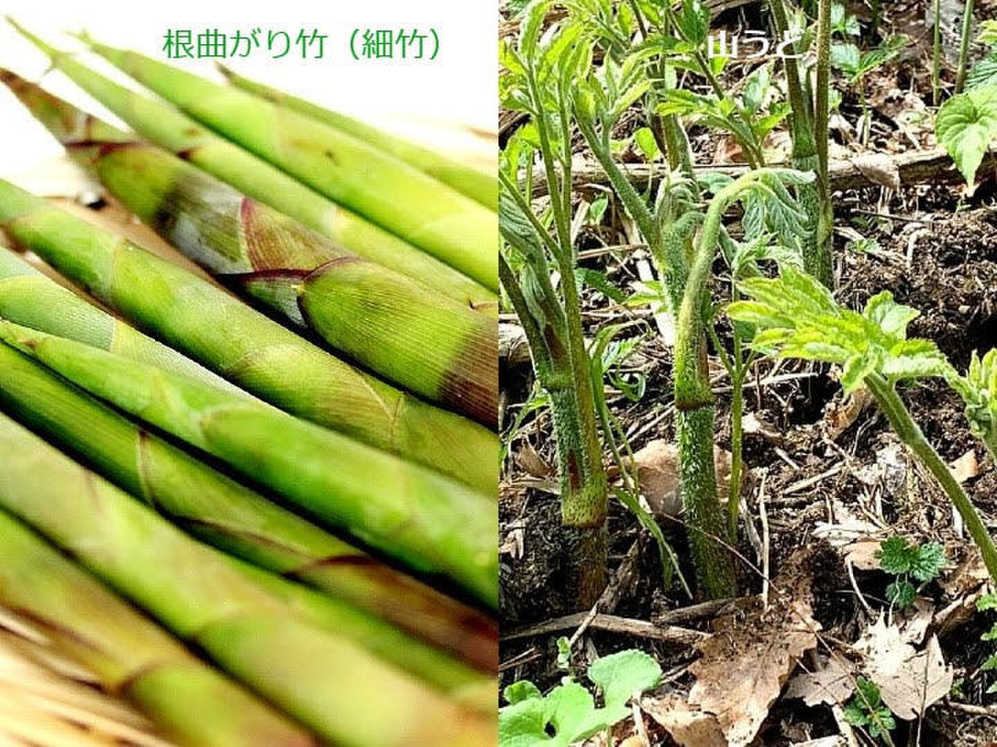 予約受付中 山菜細竹(根曲がり竹)休耕地栽培 1kg+天然山うど500g のセット 天ぷらや酢味噌和え等で春の味覚を‼