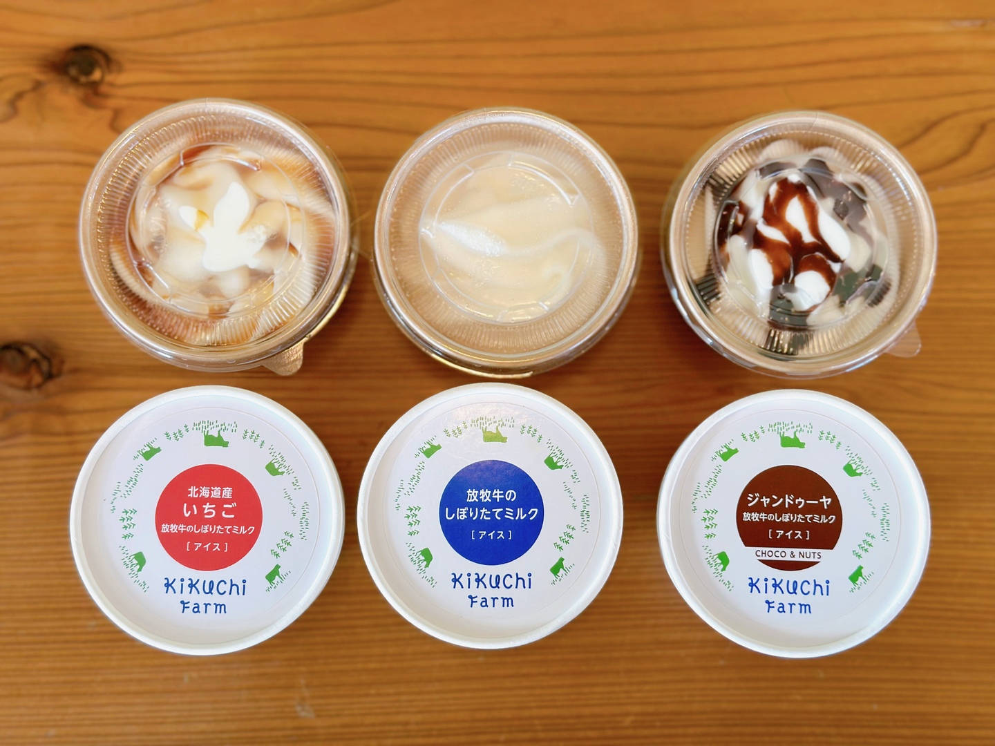 牧場で育てている牛たちから搾った「搾りたて牛乳」を使用し、化学添加物を使わずシンプルなレシピでつくる事を大切にしています。そのため、お客様からは「牛乳を食べている」かのような、そんな食感と風味を感じると仰っていただくことが多々あります。