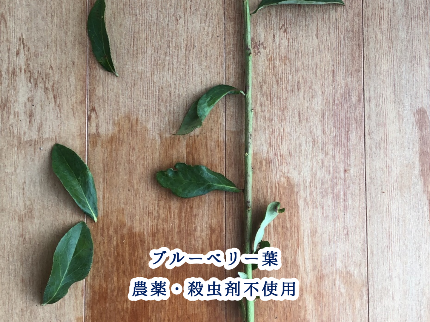 私たちの農薬・殺虫剤不使用で育てたブルーベリーの葉と、