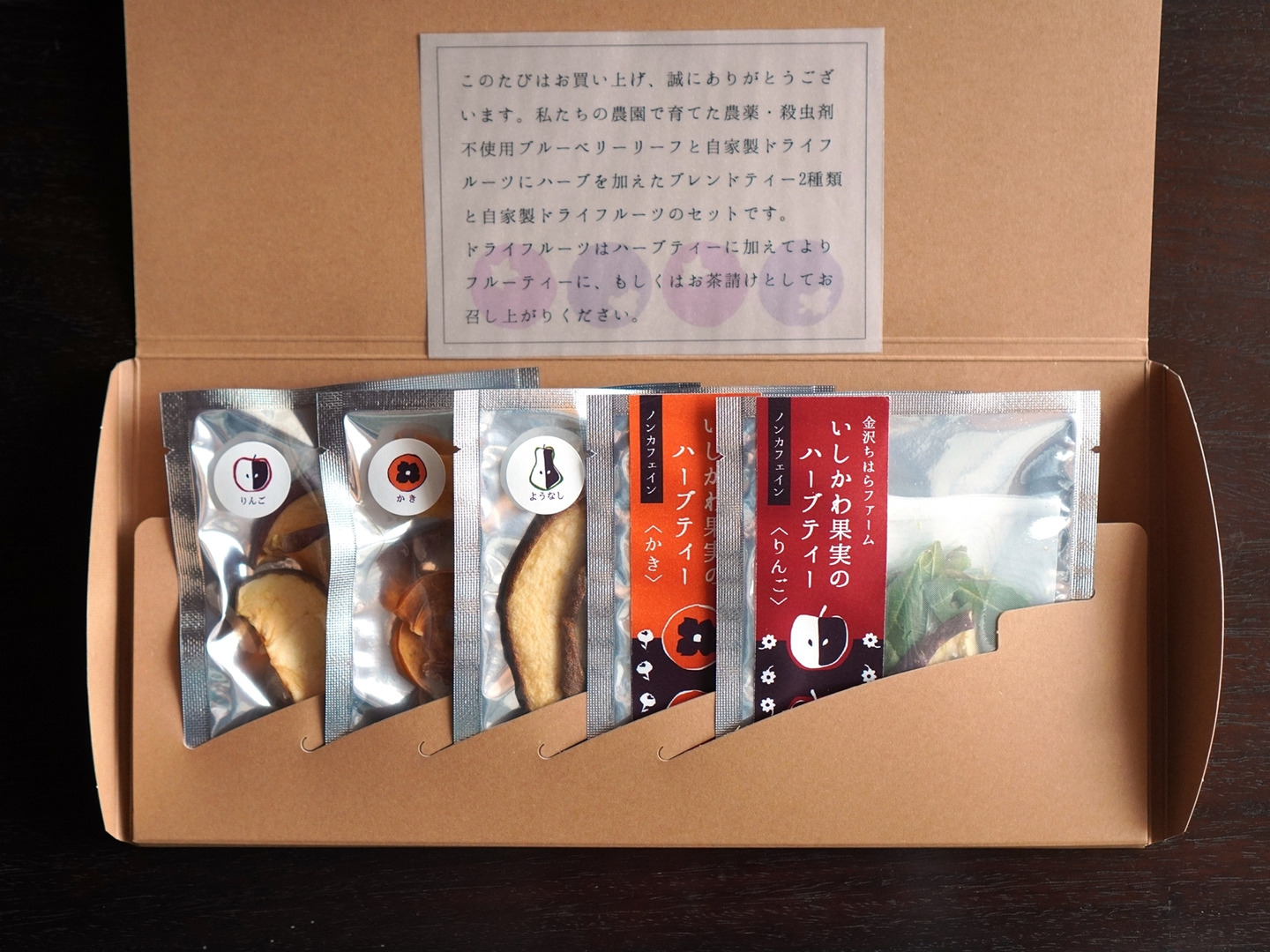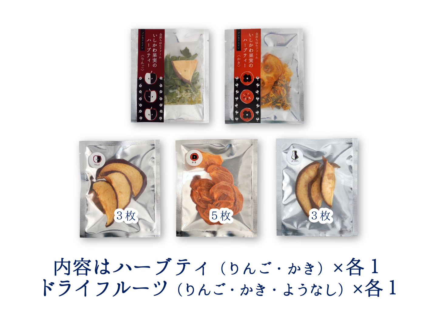 ハーブティーりんご・かき×各1、りんご・かき・ようなしちっぷ×各1