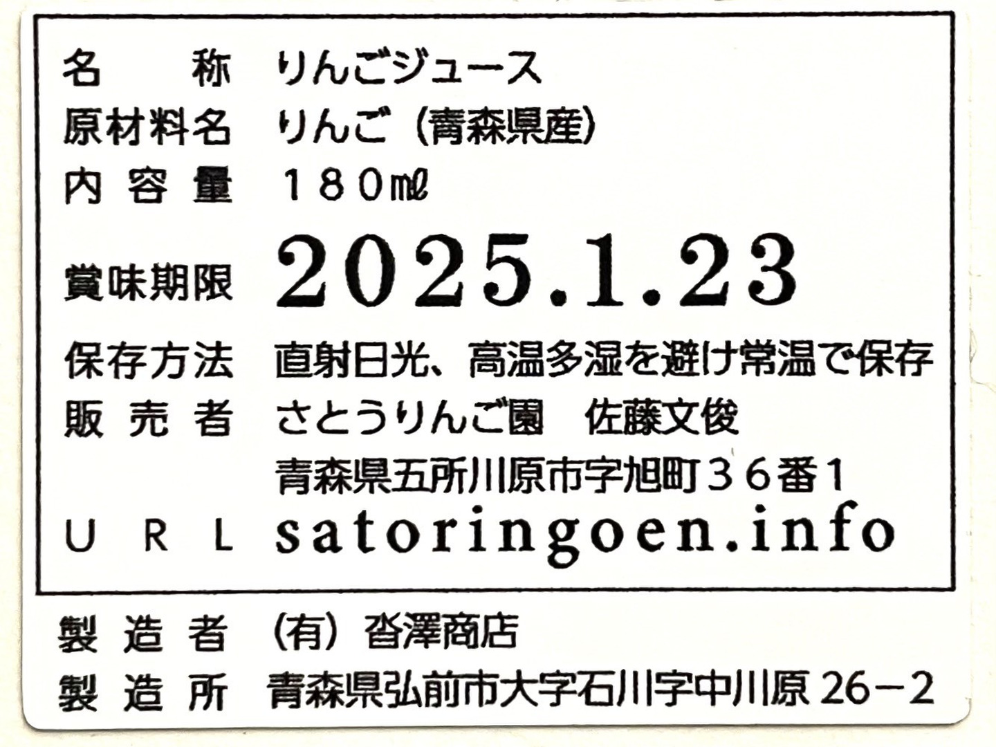 ”無添加・無濃縮・無着色”の自然派りんごジュースです