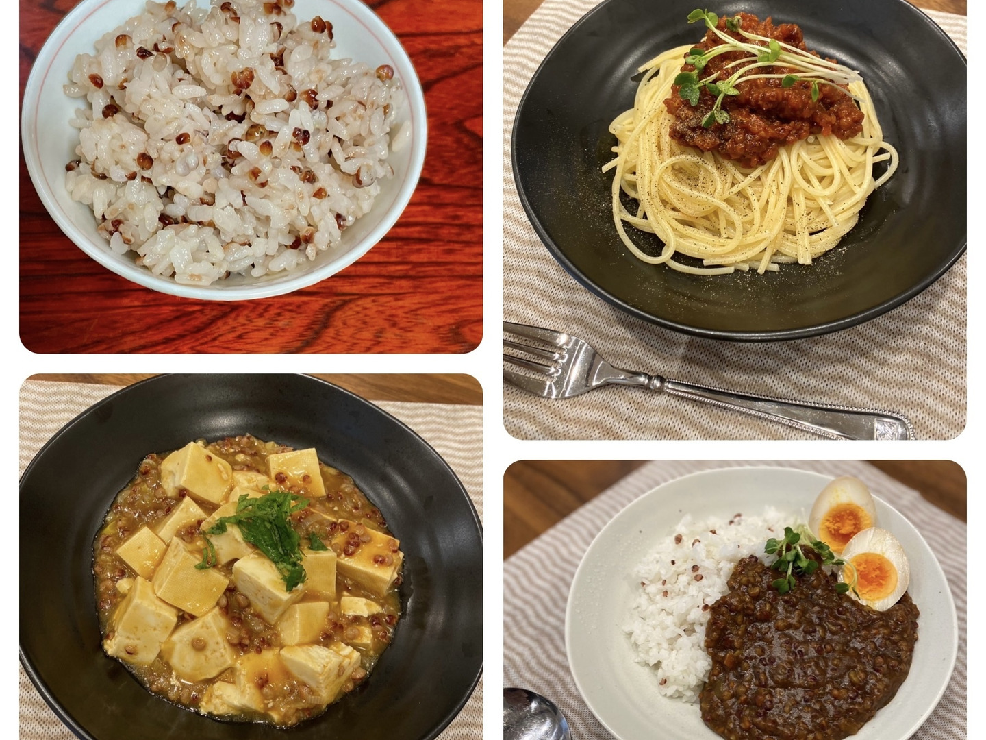• 2 ご飯に混ぜるだけじゃない、お肉の代用にも!