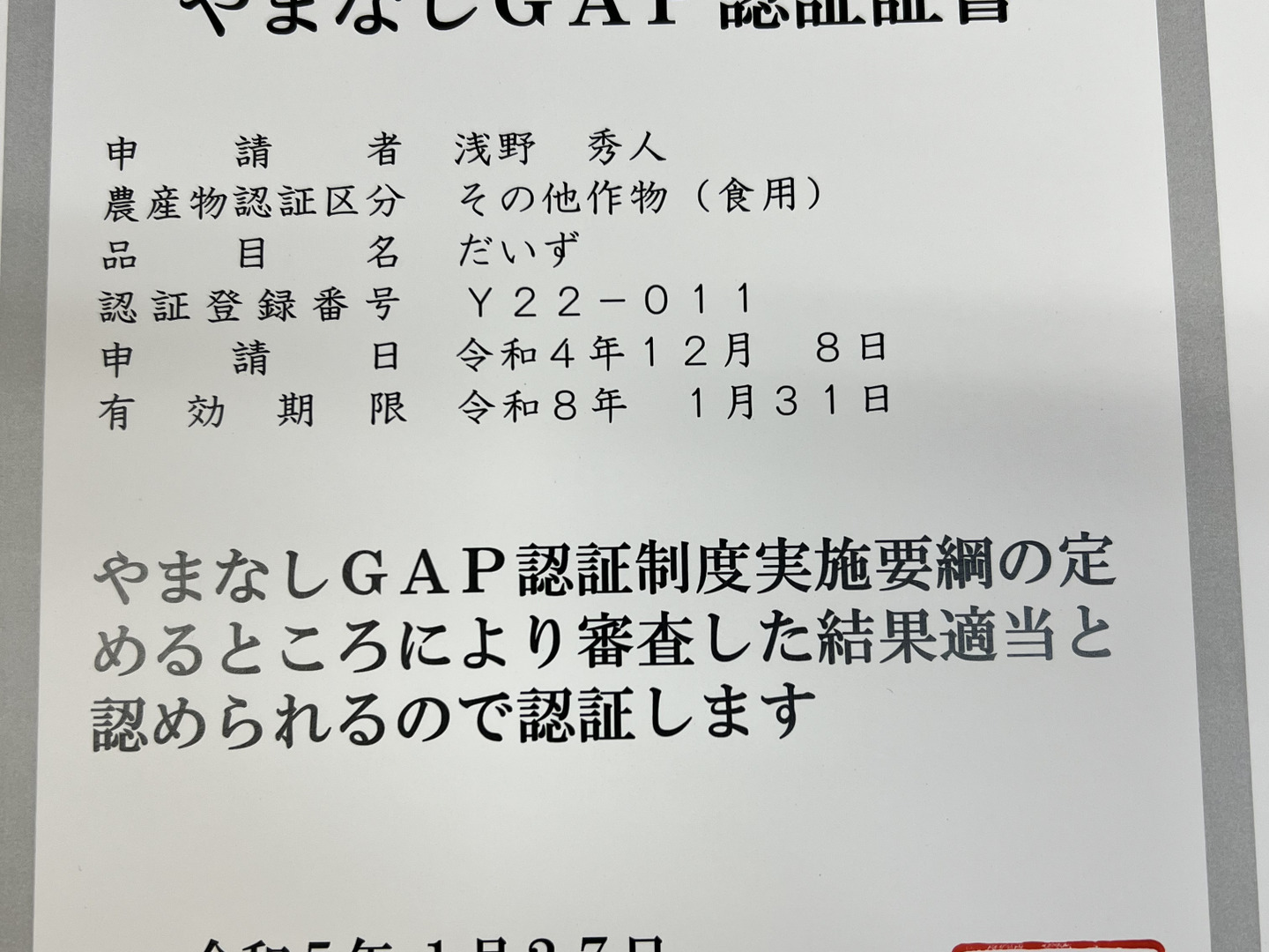 化学肥料は使用せず、昔ながらの堆肥や緑肥を使って育てています。やまなしGAP認証 今年度、有機JAS取得予定