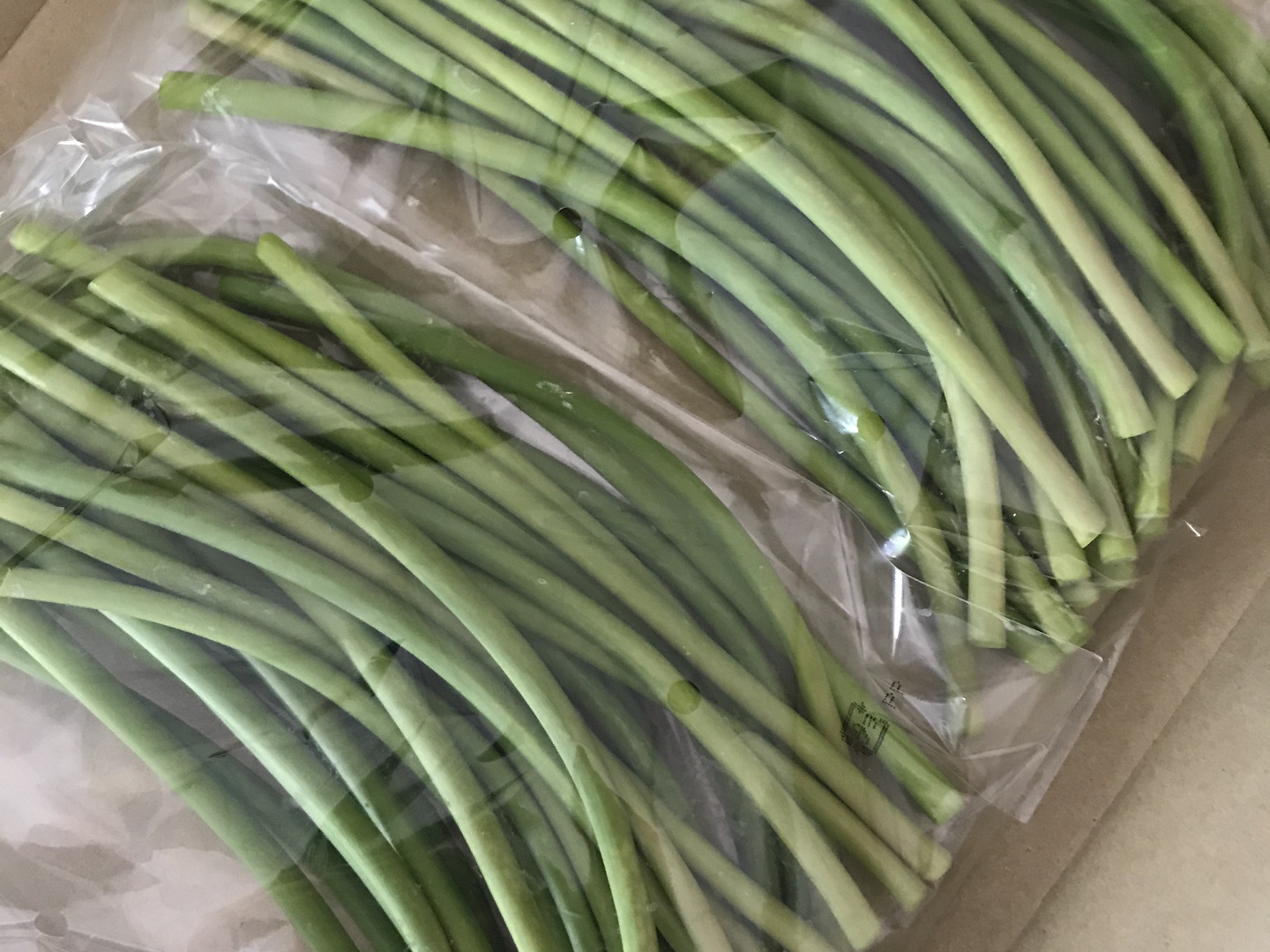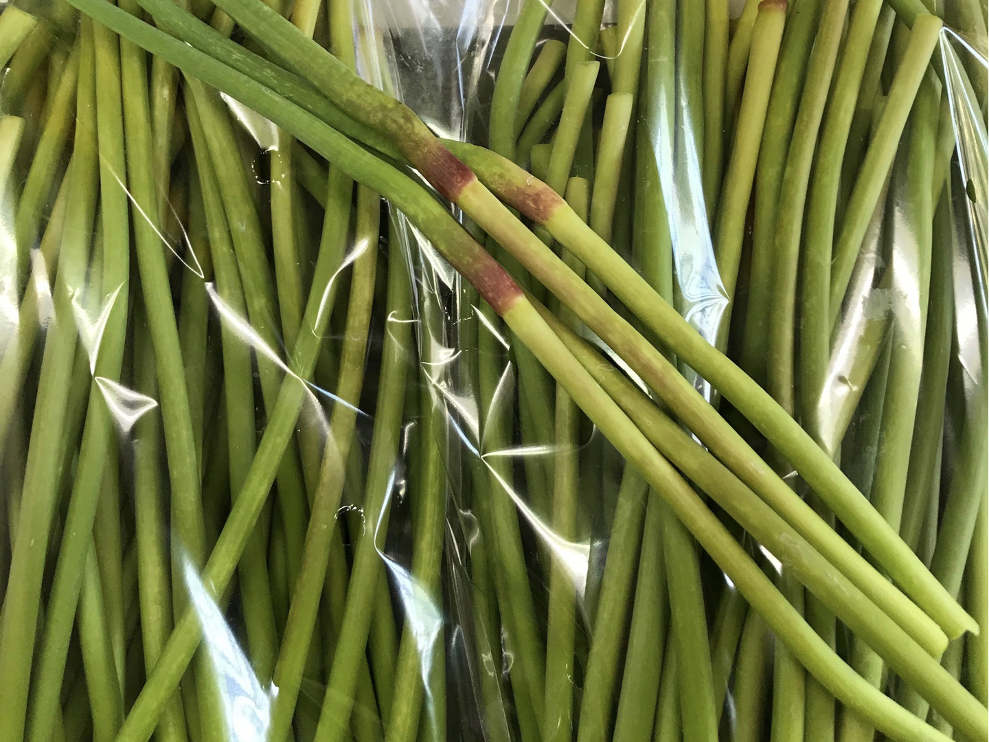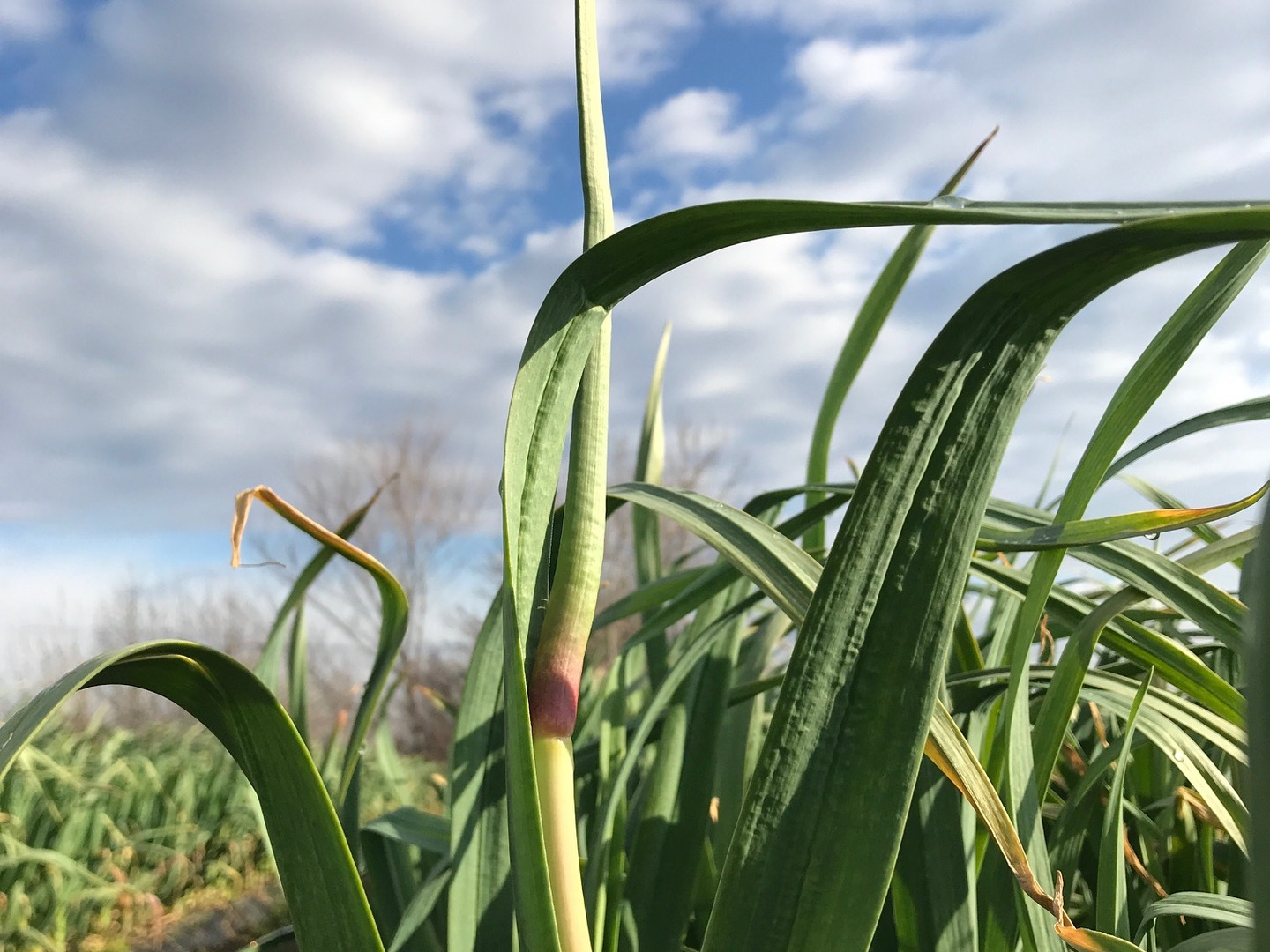 今までにんにく生産者しか食べることができなかった『シャキシャキにんにくの芽』。一般的に流通していない若く柔らかい摘みとったにんにくの芽のことです。