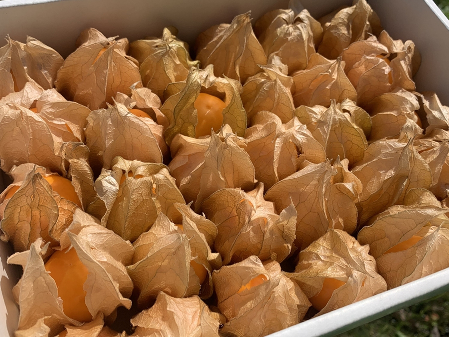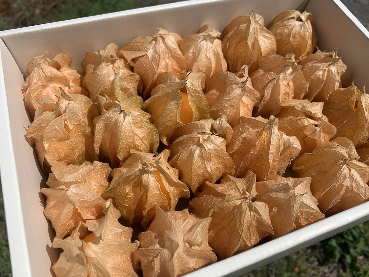 栃木県上三川町産食用ほおずき箱詰(24粒~36粒/正味450グラム前後/ガク(袋)を含む)