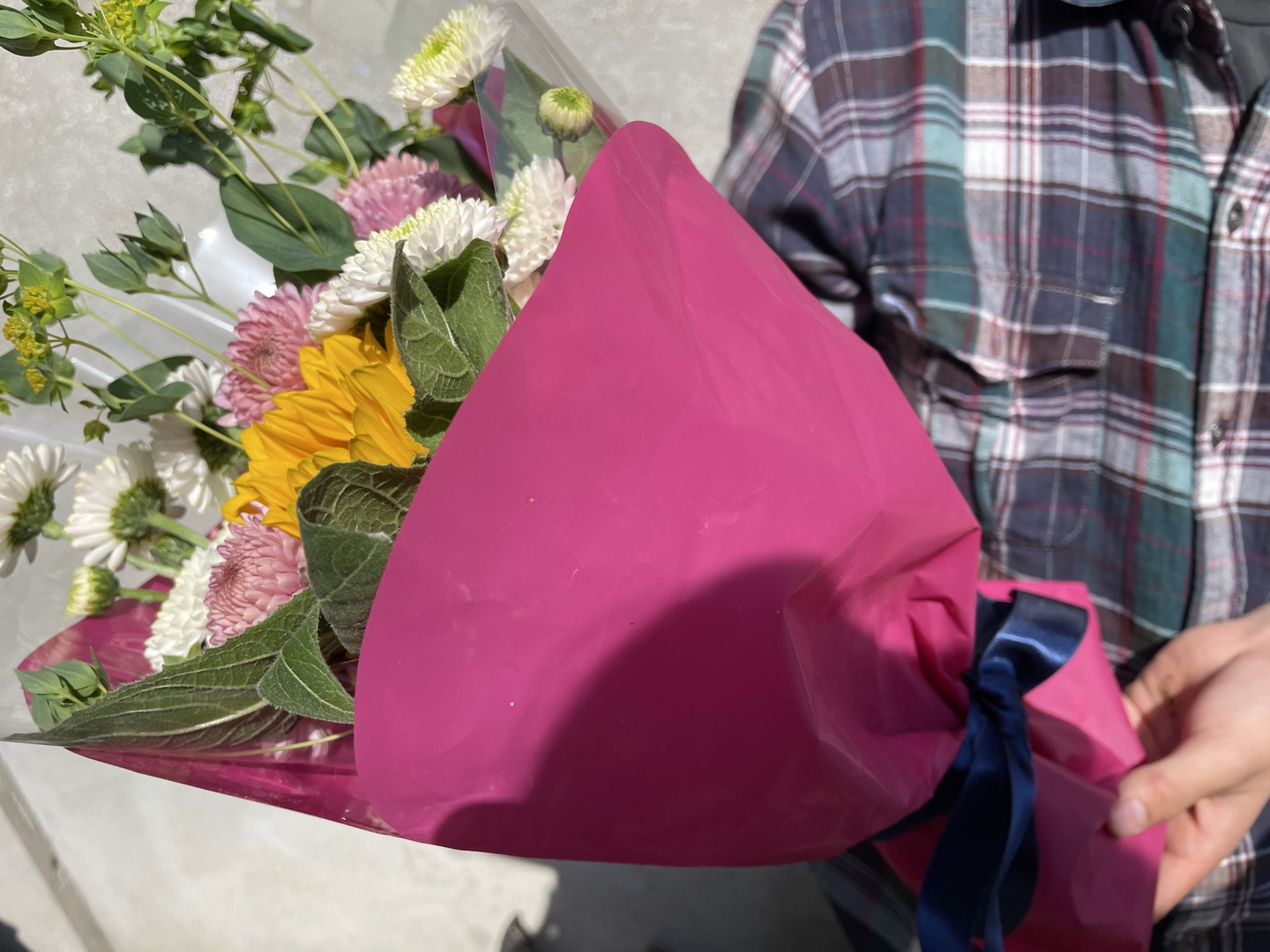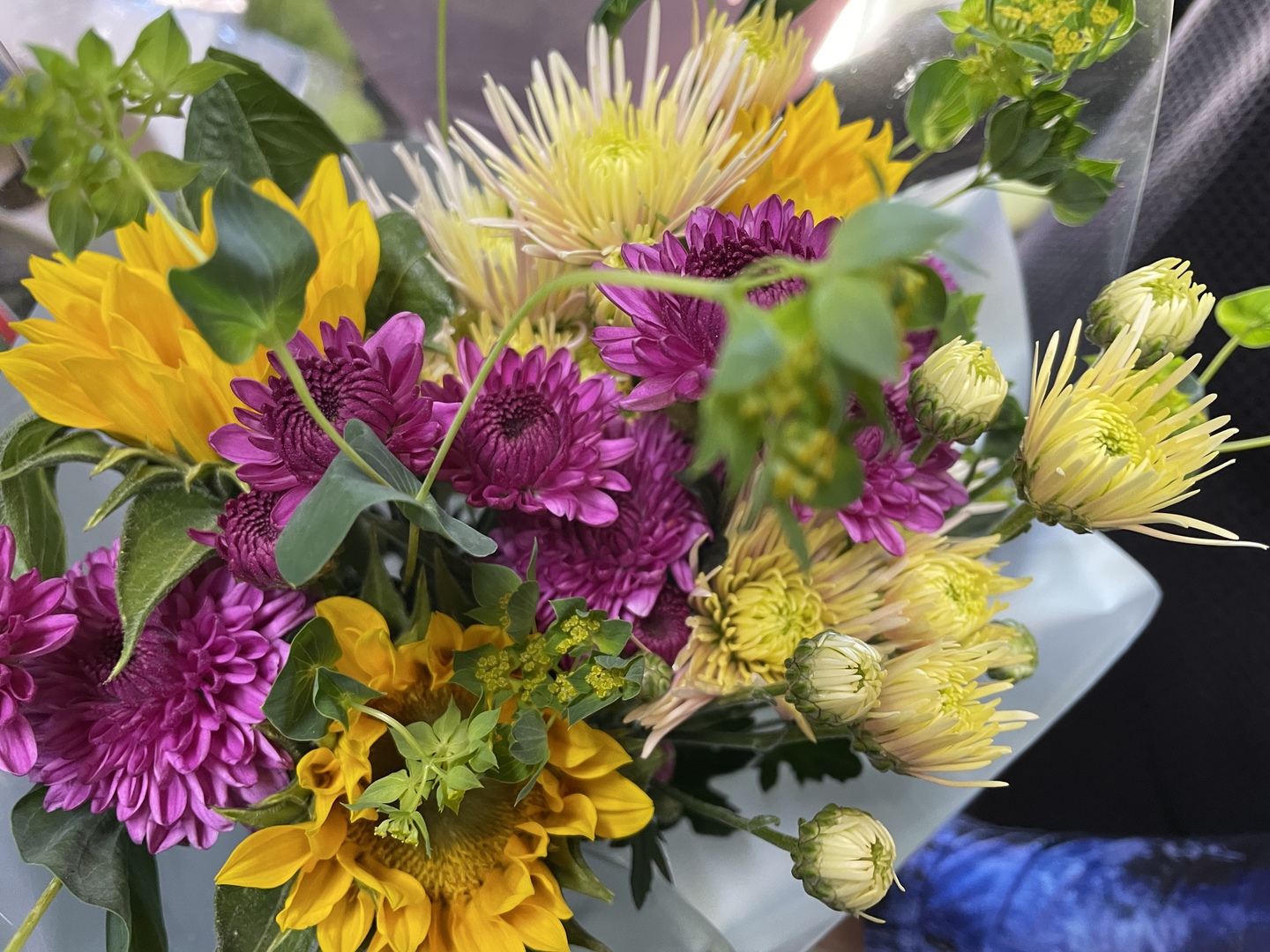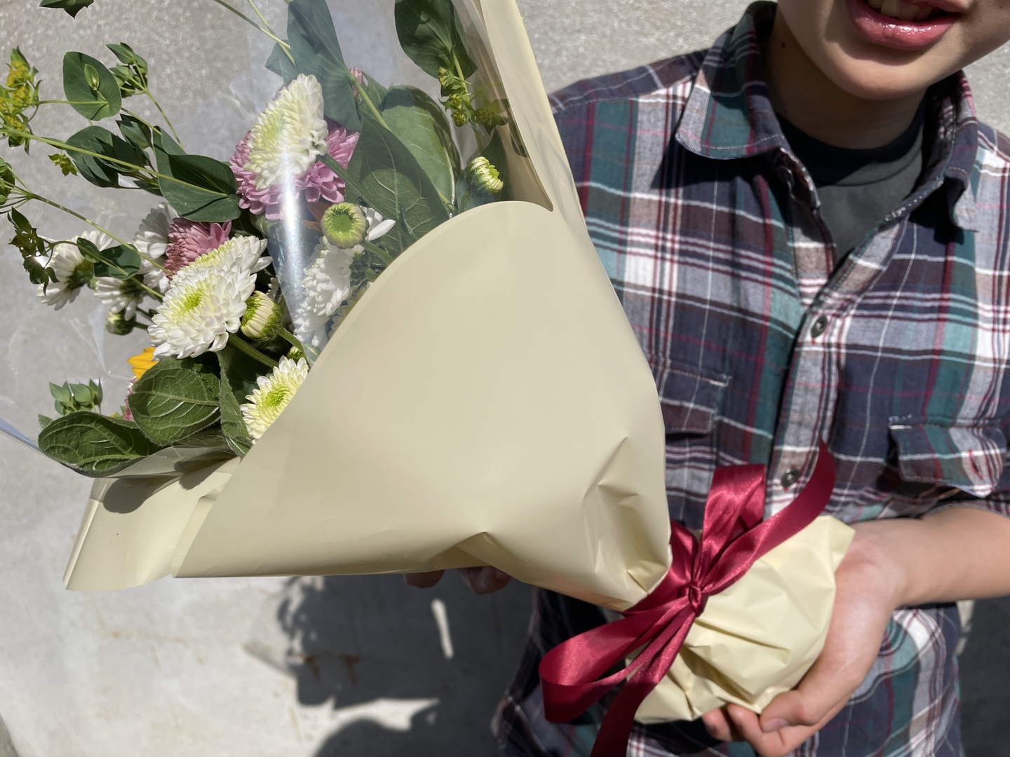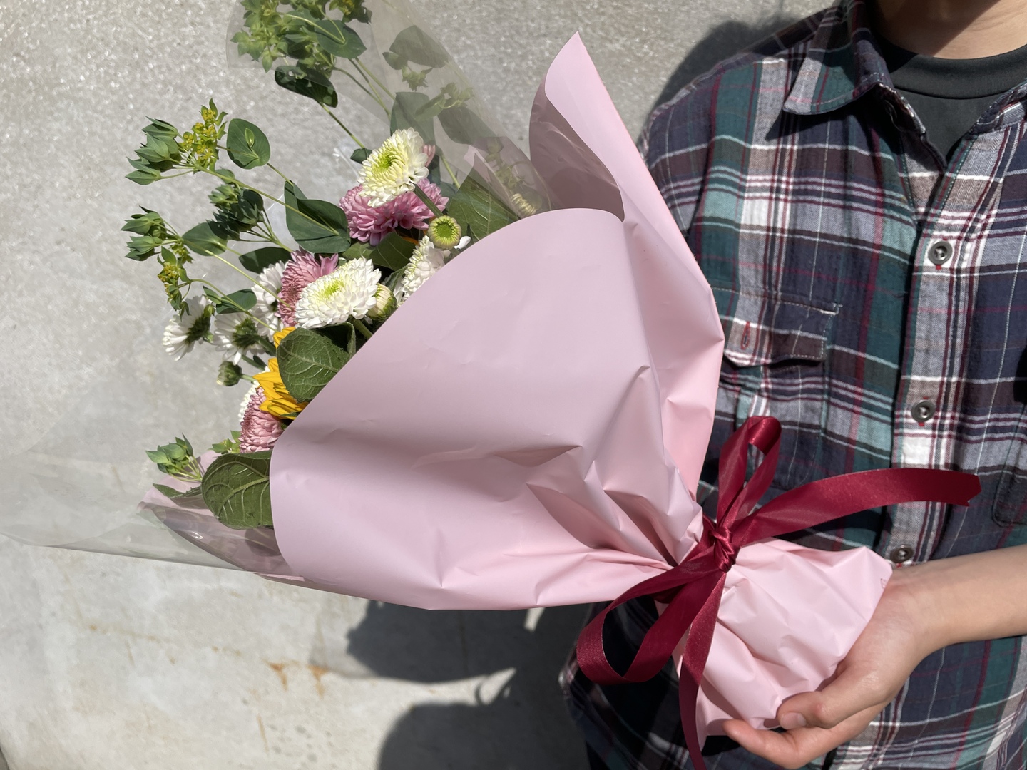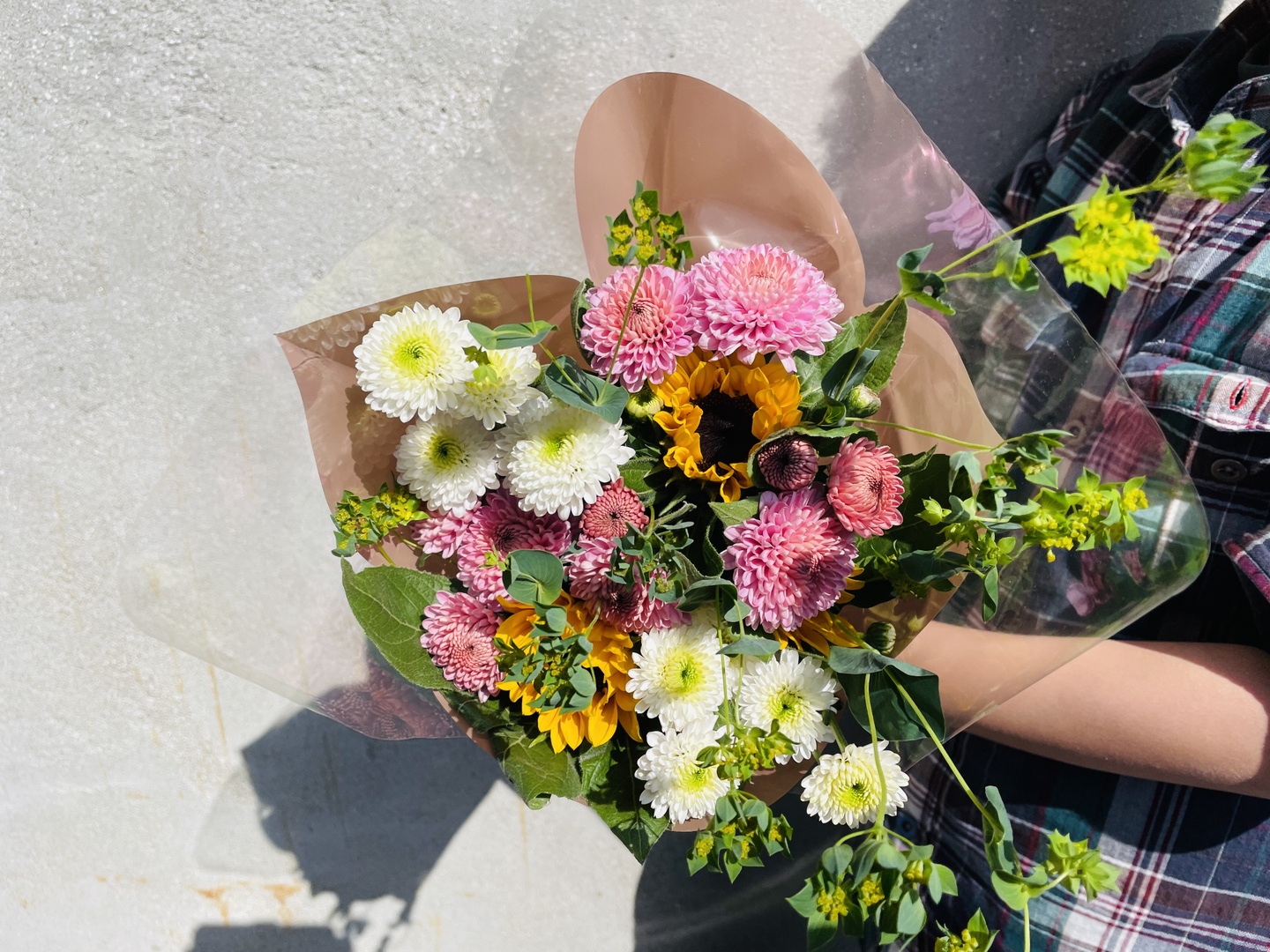 【贈り物にピッタリ!】ひまわりとマムの花束(10本~15本)