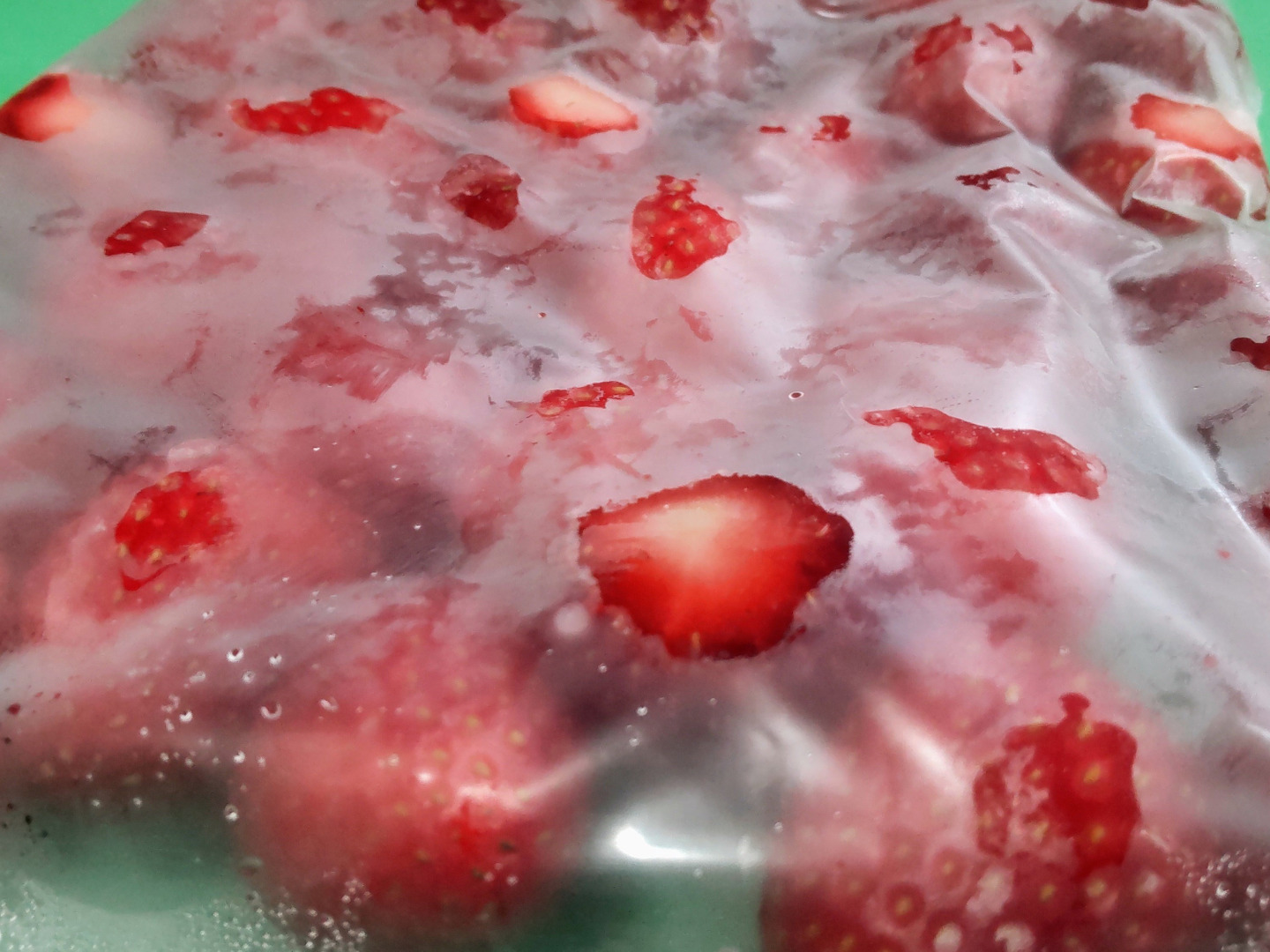 ・容器に移し替えて刻んだ冷凍いちごをトッピング!
