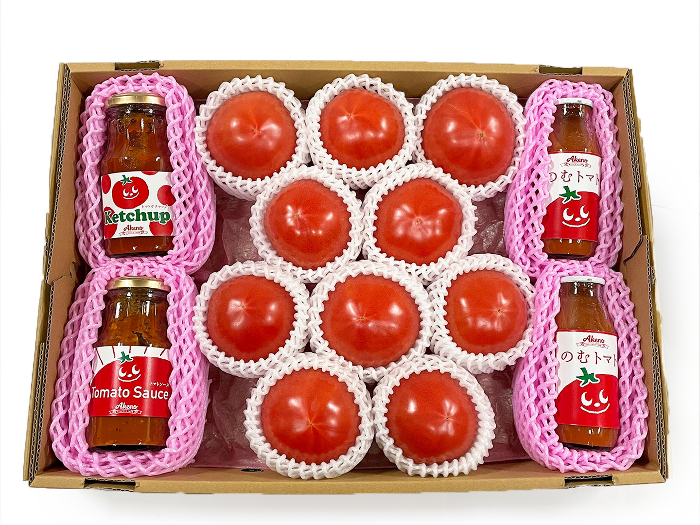 山梨県北杜市明野町は日照時間が多く豊富な水に恵まれています。明野ファームは美味しいトマトをたくさん生産して、安定した価格で提供したいという思いで真剣に農業に取り組んでいます。みずみずしくて甘味と酸味のバランスが良いとまとです。また安心 安全 安定生産 安定品質 安定価格を自社製品の加工品や地域の生産者様との取り組みも行っています。明野とまと とまとを使用した加工製品のセットです