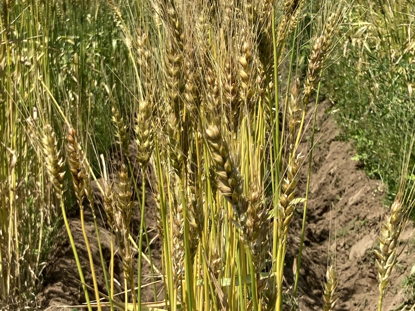 収穫後掛け干しをして脱穀、そして自家製粉して小麦粉と全粒粉を作っております。