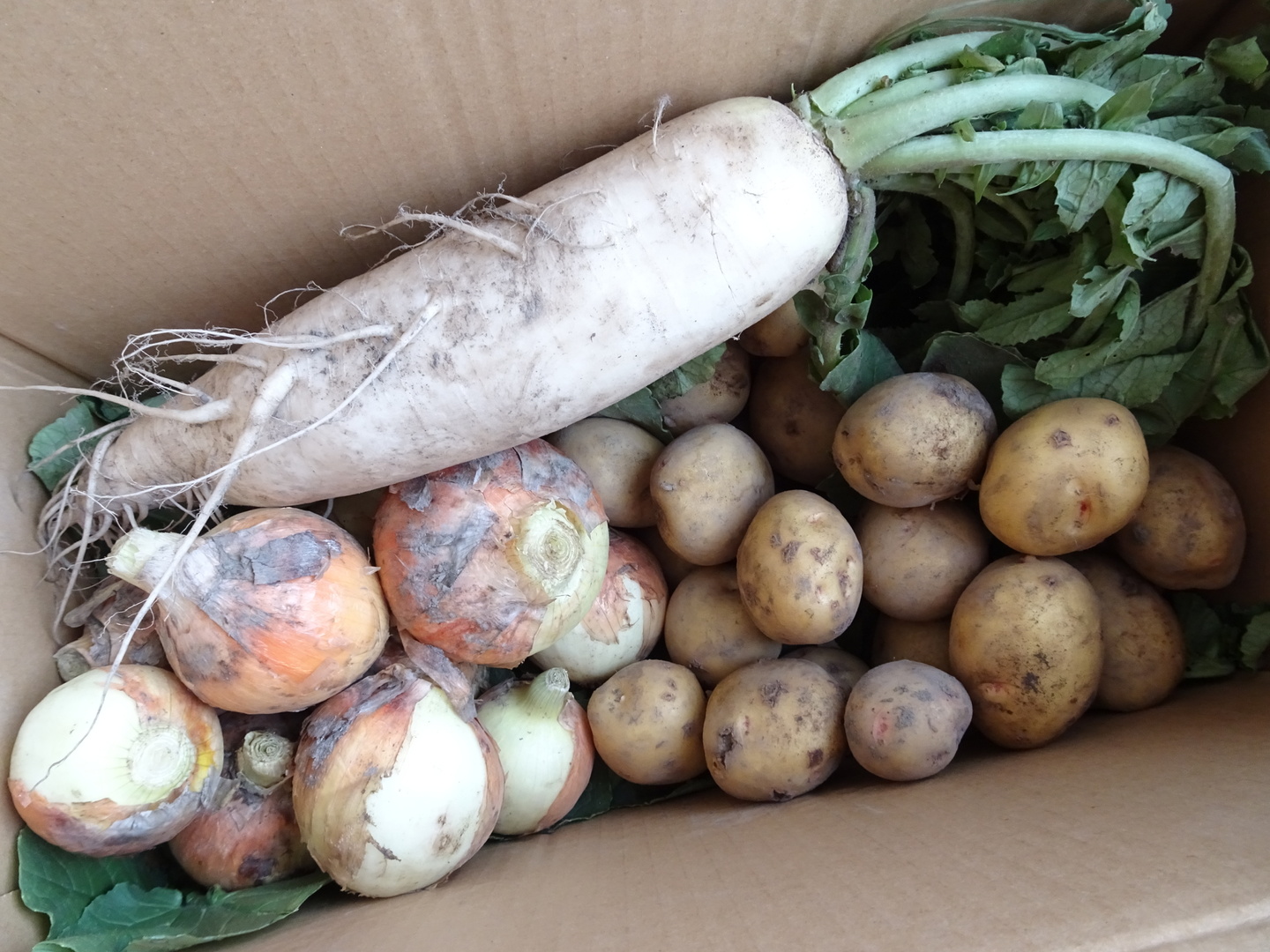 ニンニクの芽・ニラ・小松菜・大根・新にんにく・椎茸・玉ねぎ・赤玉ねぎ