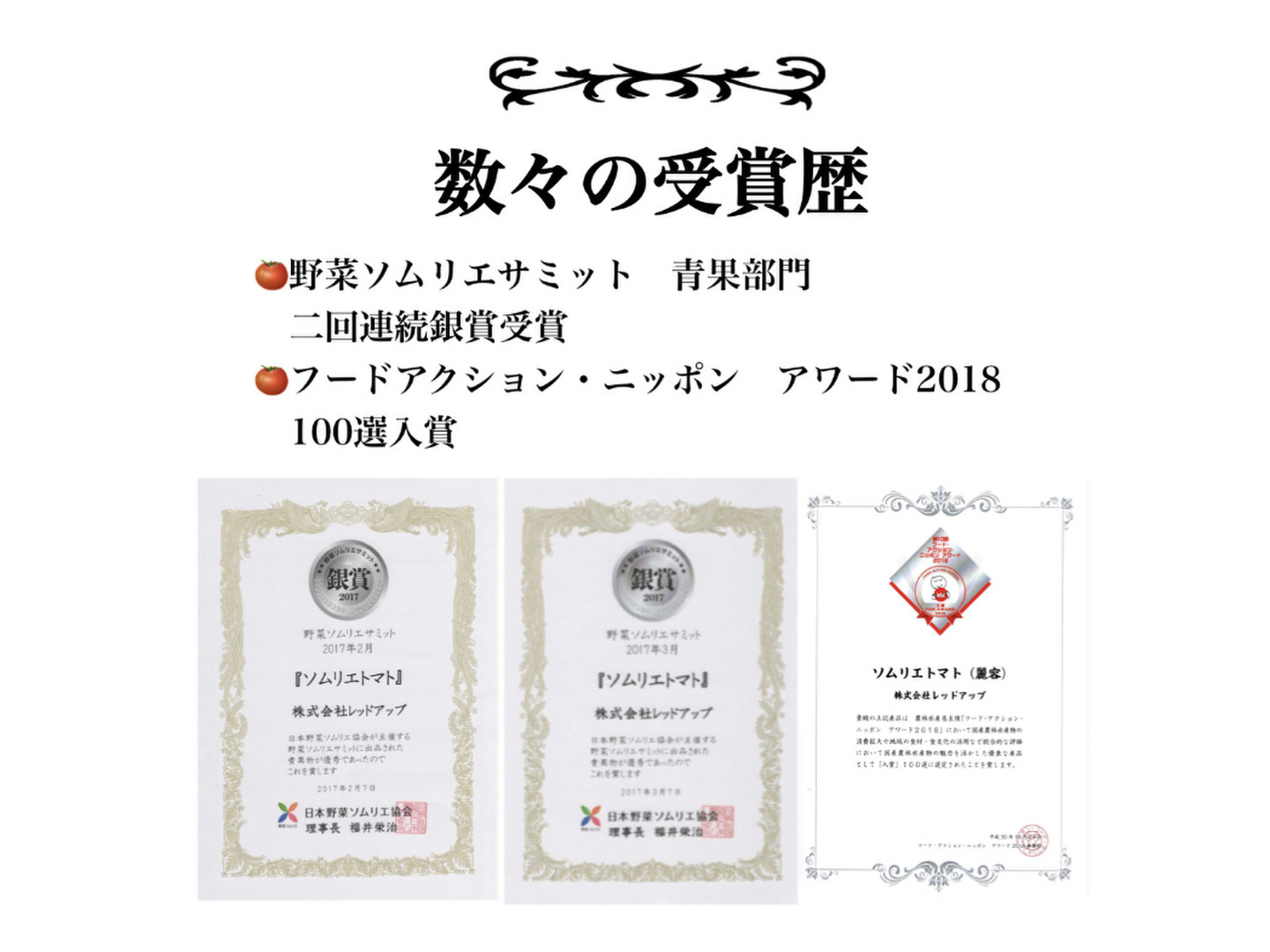 - 皮が薄く酸味が少ないためお子様から高齢者まで親しまれるソムリエトマト