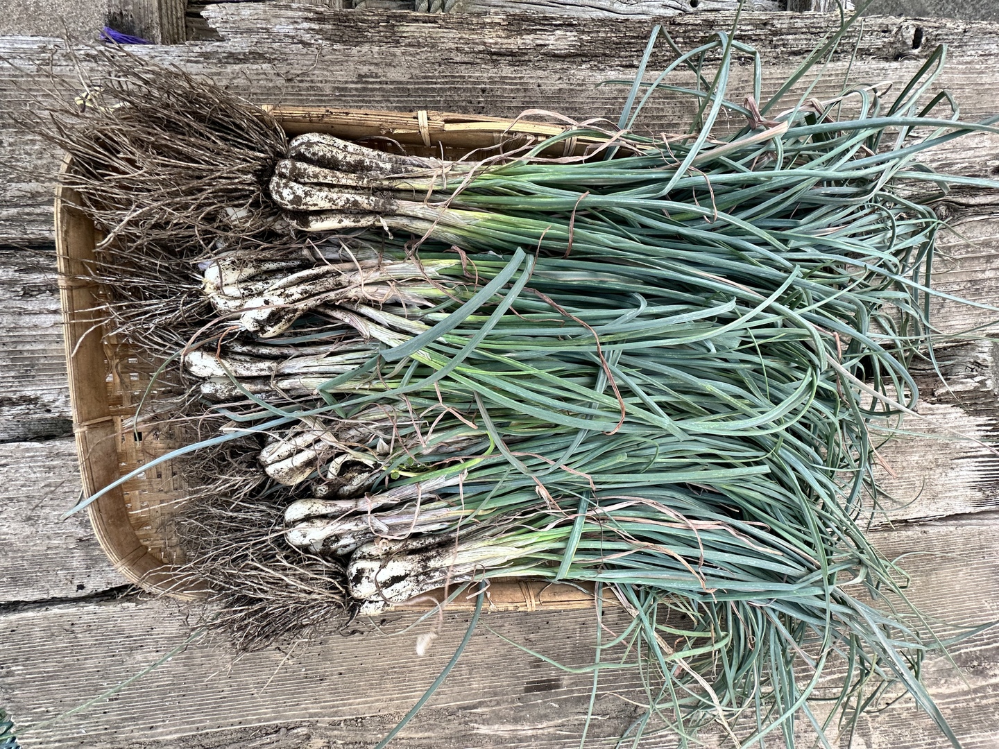 エシャレットは、ラッキョウの若どりと言われていますが、種屋さん曰く、実は別物らしいです。エシャレットはエシャレット用の種を使用しています。