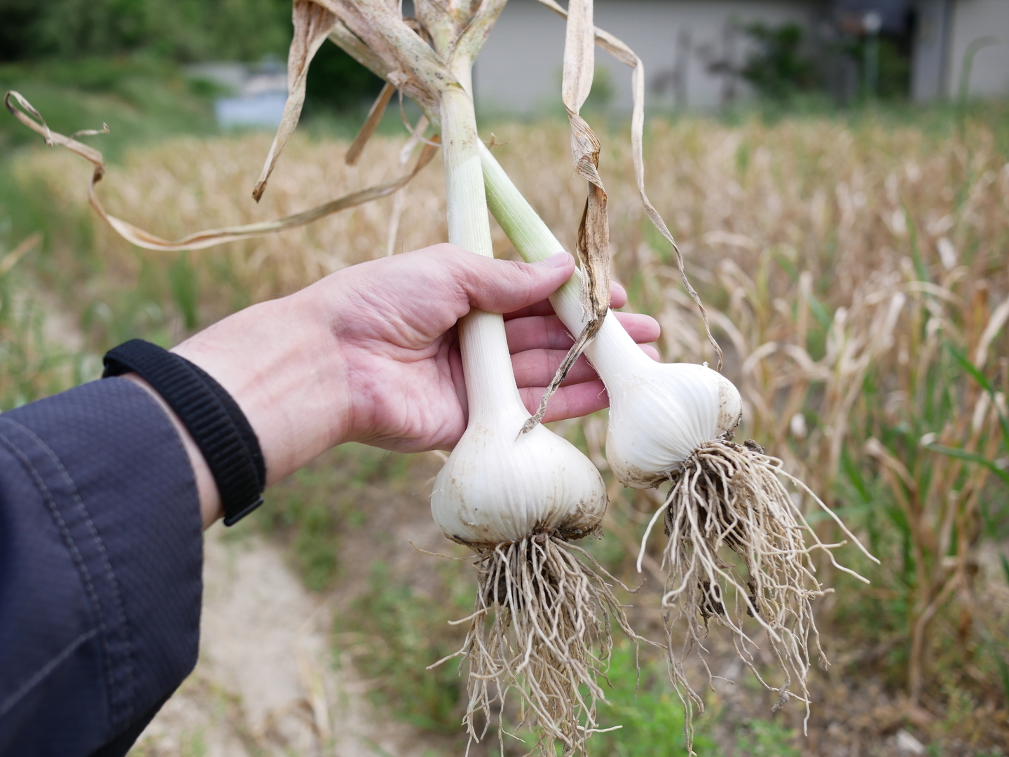 『毎年待ち望まれている生にんにくを、少しでも早くお届けしたい!!』と考え、にんにくのメッカ青森県でも作られている『福地ホワイト六片』を季節が早い愛知県で少し早めに育てました (^o^)
