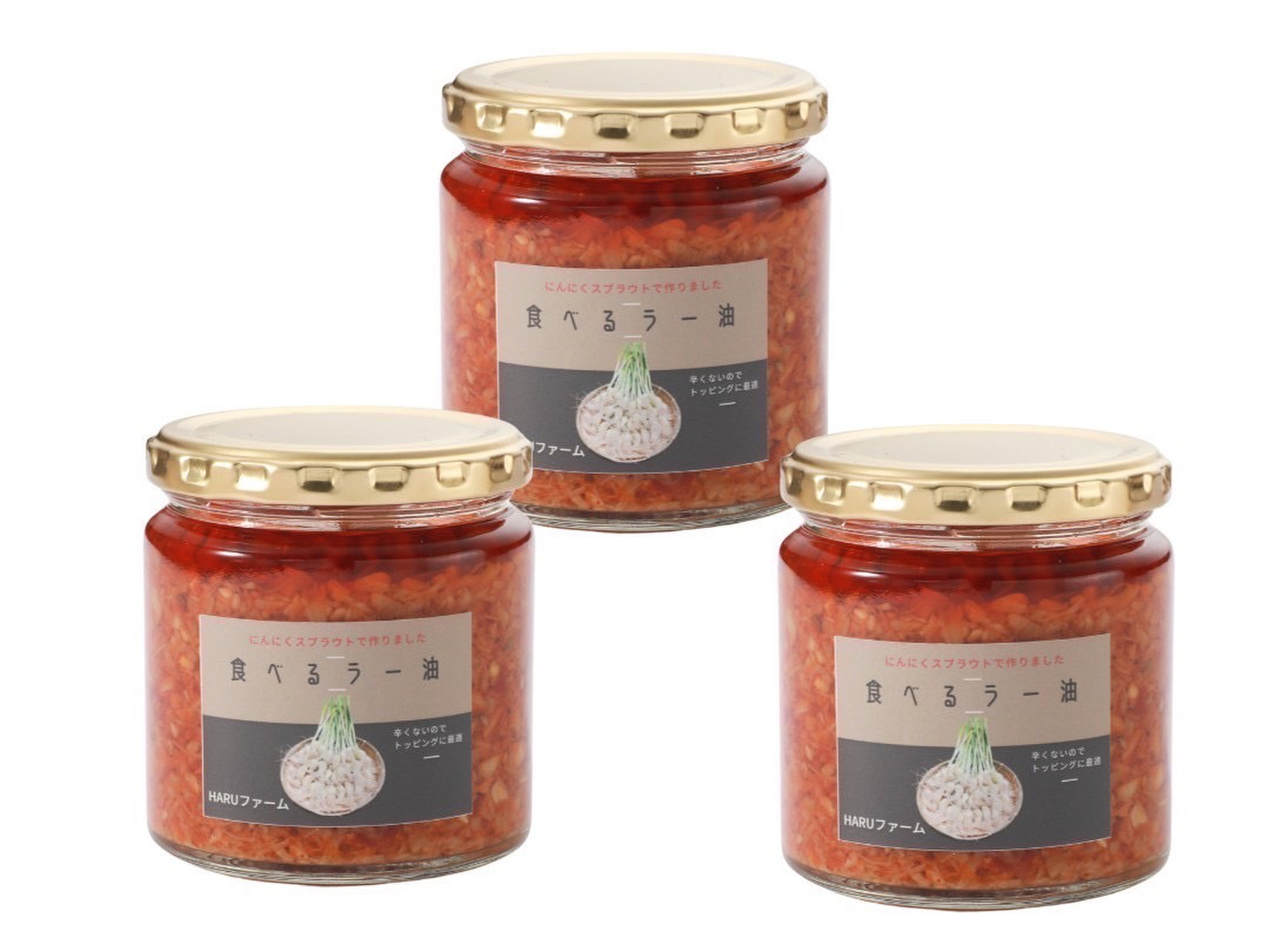 遠赤外線農薬不使用のにんにくスプラウトの食べるラー油3個セットです。