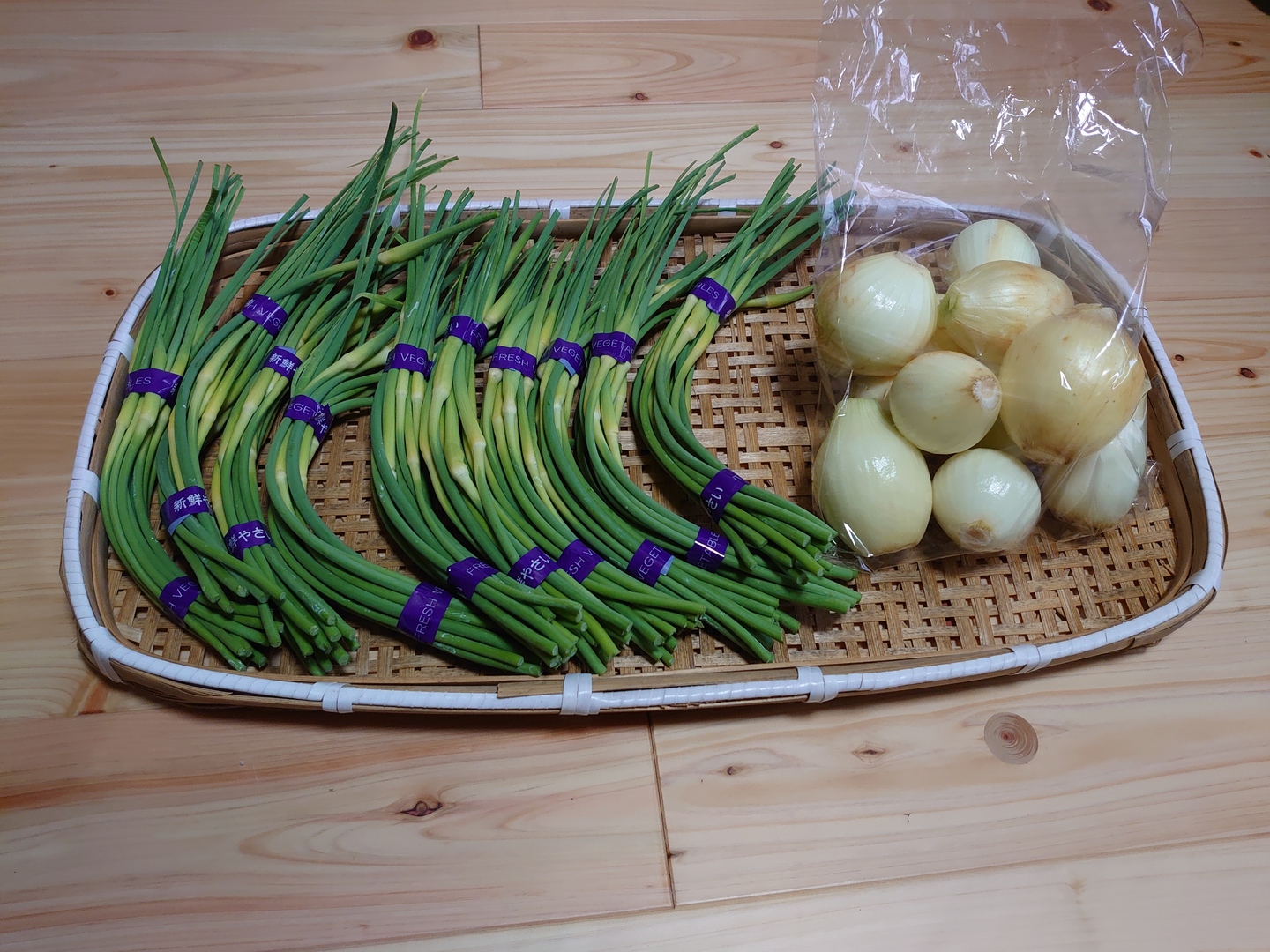 熊本県産と宮崎県産ニンニク芽(10束)と新玉ねぎ1kgセット