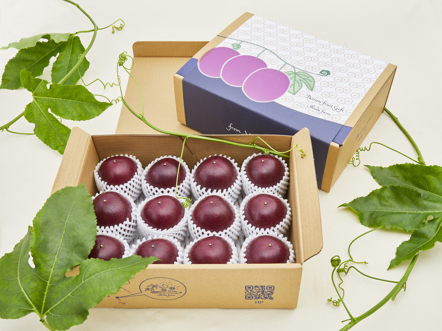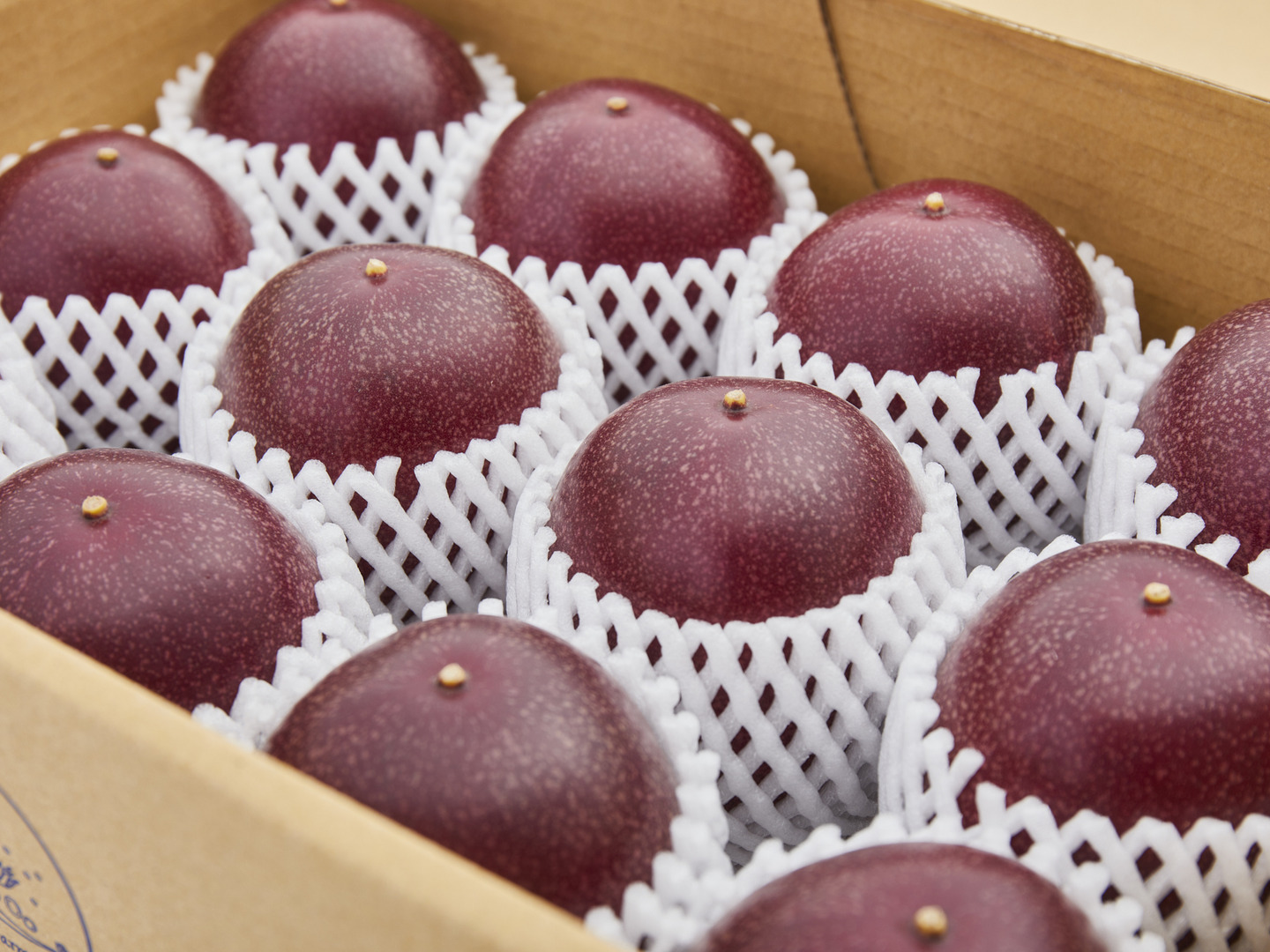 パッションフルーツA級品L玉12個です。オシャレな化粧箱にてお送りしますのでご贈答にどうぞ!