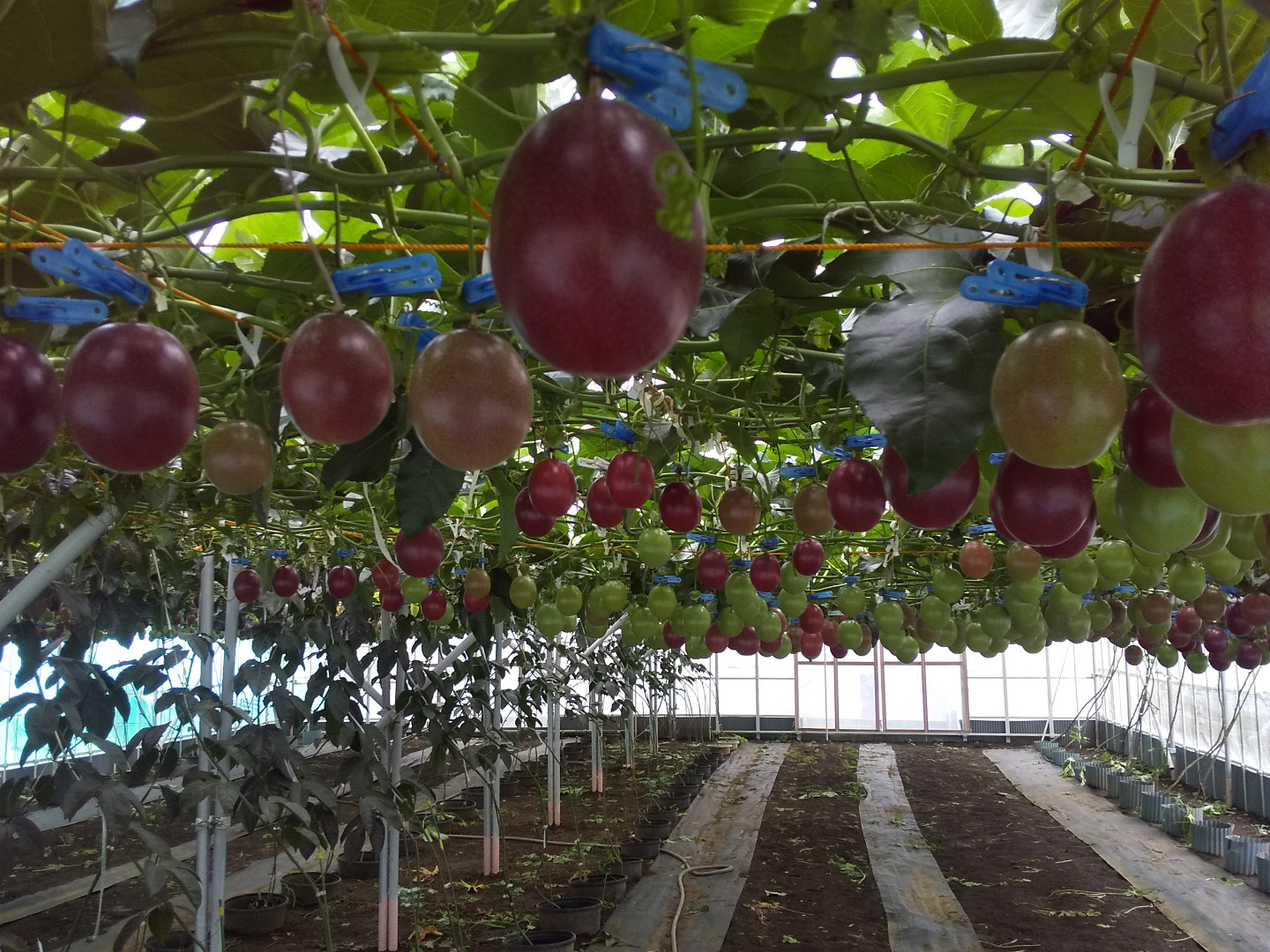 パッションフルーツは高温になると花芽が止まるので、暖かい地域から寒い地域へと産地が移動します。沖縄・奄美・小笠原はおおむね7月前がピーク、伊豆諸島・九州は7月、千葉や八王子は8月がピークです。