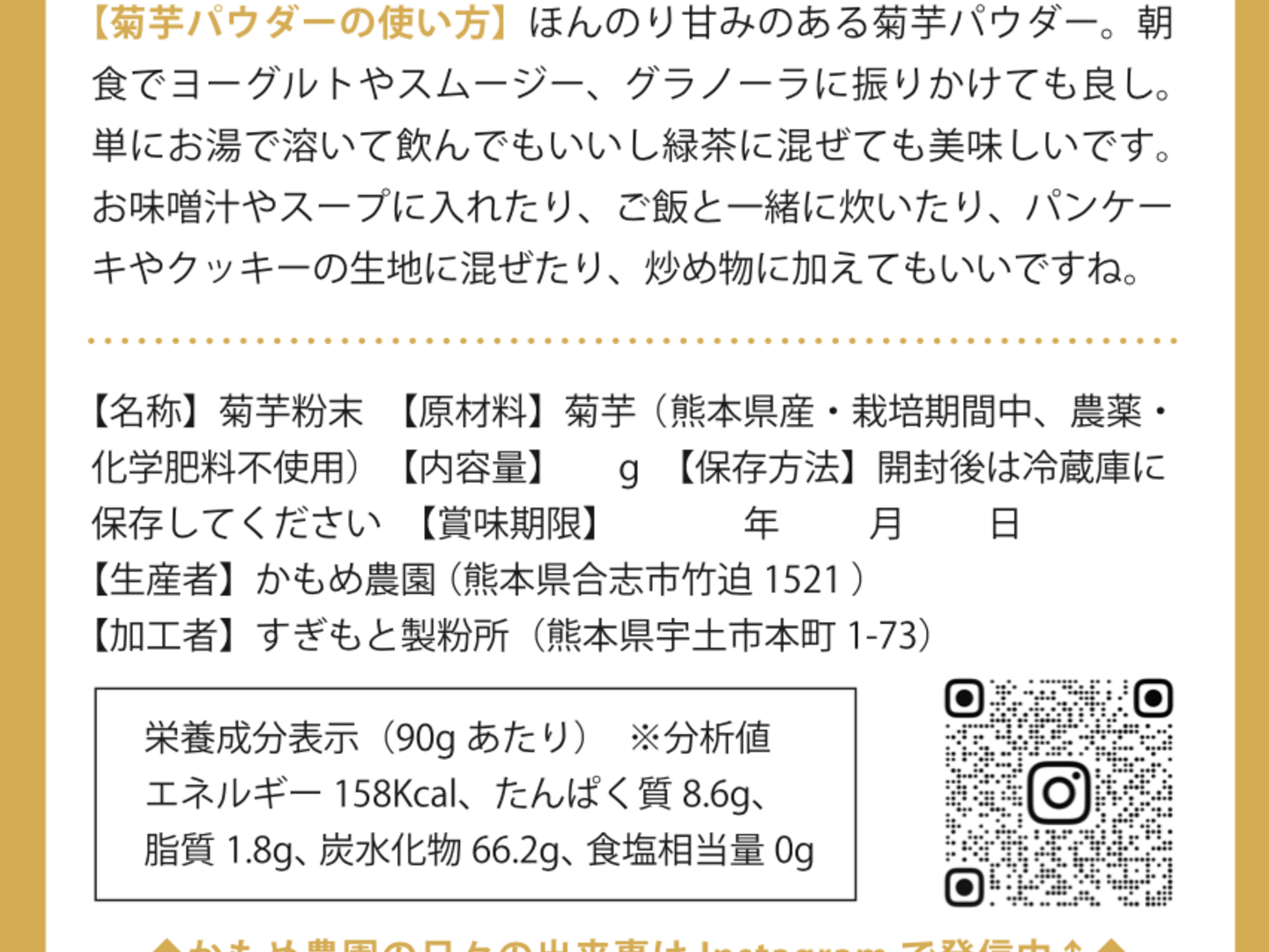 熊本で天塩にかけて栽培した菊芋を乾燥後パウダーにしています。