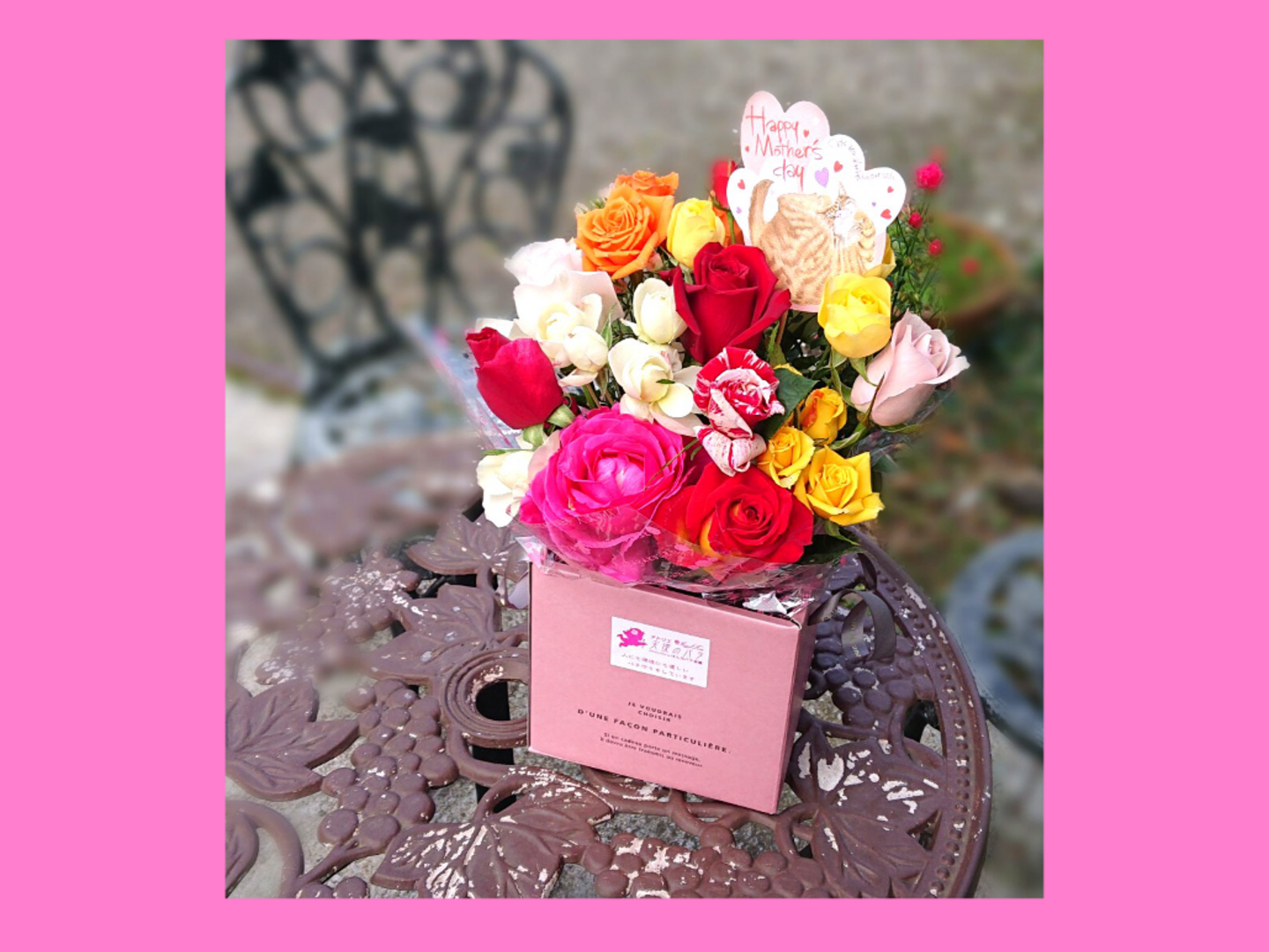 【母の日ギフト】大人可愛い♪薔薇だけのBOXアレンジメント(Lサイズ)