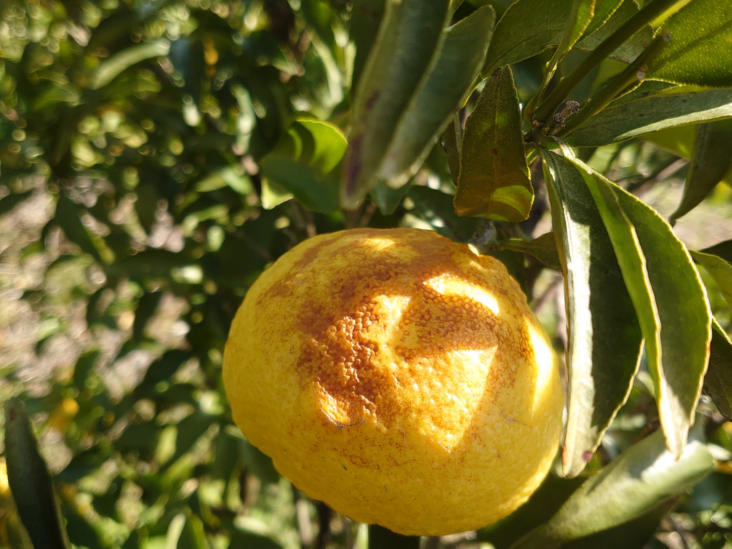 通常、1月上旬収穫ですが、3月中旬まで完熟栽培しています。味は美味しいのですが、霜により果皮に障害があります。早めに食べて下さい。
