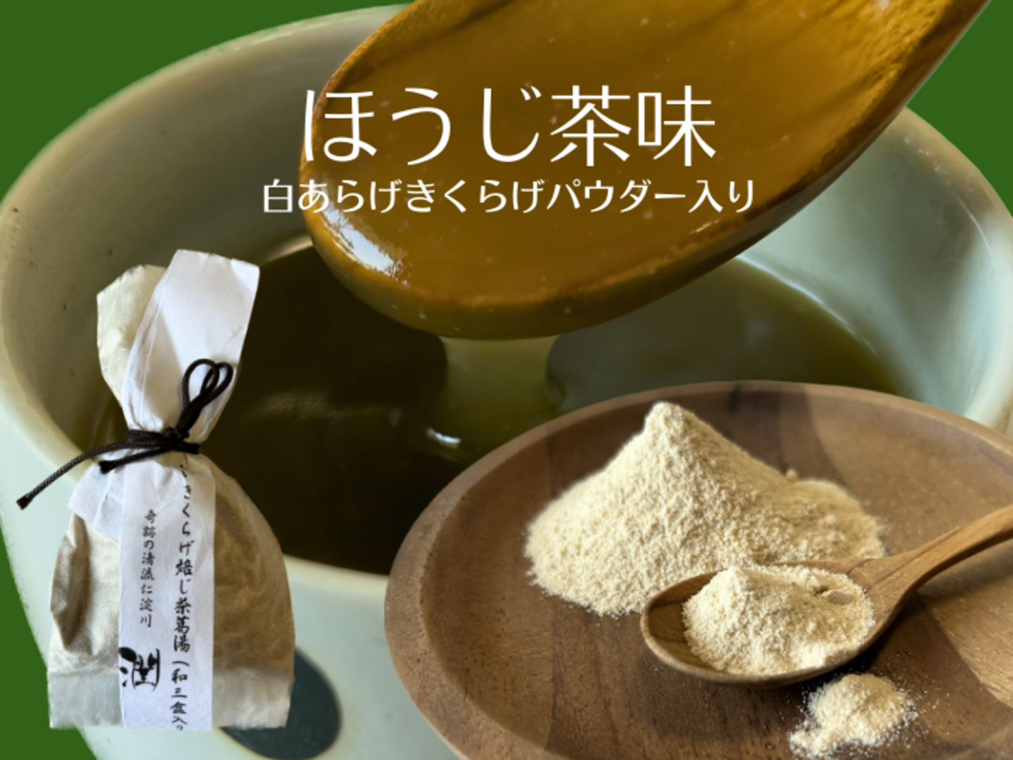 内容 きくらげパウダー入りくず湯×3セット(プレーン味40g×3包、ほうじ茶味40g×3包、しょうが味40g×3包)