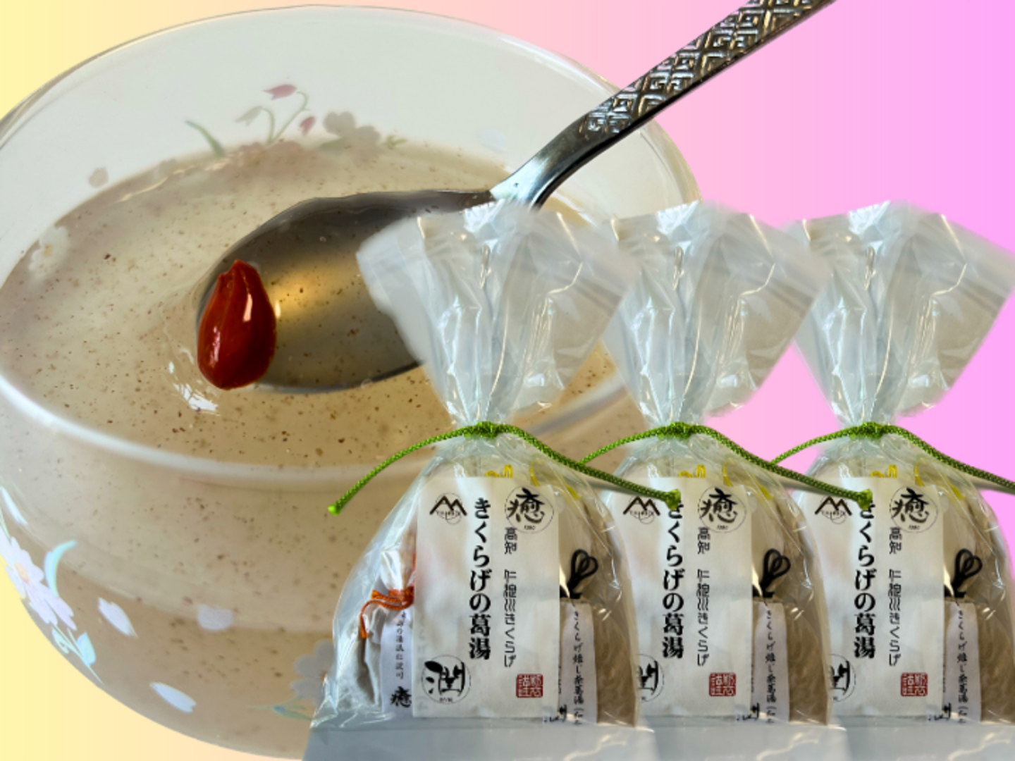【夏は簡単!冷やし葛湯】高知県産きくらげパウダー入り「くず湯」3セット。(プレーン味×3、ほうじ茶味×3、しょうが味×3)とろ~り甘い昔懐かしの味わいをお届けします。全国一律のネコポス配送