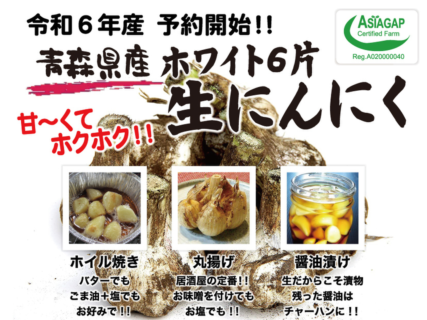 • 青森県産 最高級品種ホワイト6片の採れたて「生にんにく」です!!