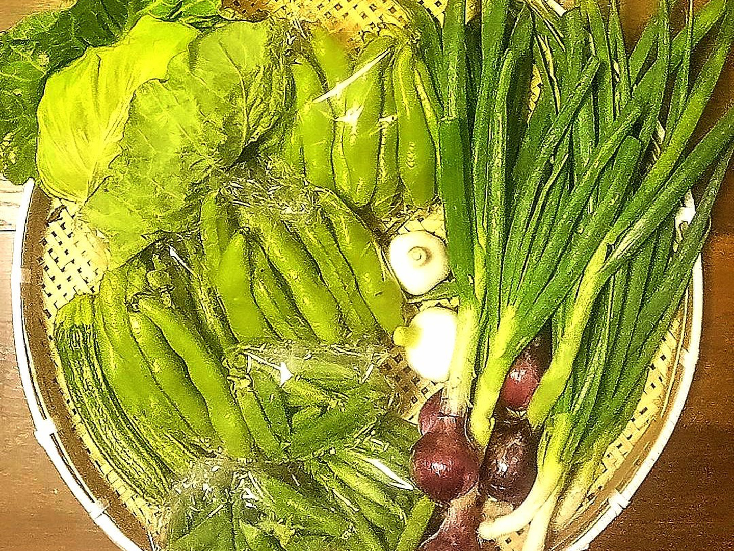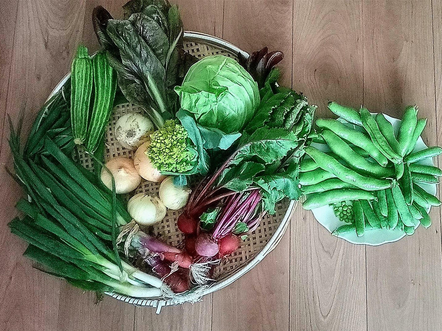 今が旬の「そら豆」「グリーンピ━ス」を多めに「新玉ねぎ」「赤玉ねぎ」「春キャベツ」「ビ━ツ」の他、ちょっと珍しいイタリア野菜等を加えて合計7〜8品目程度の野菜セットです。(販売期間中に豆類以外の種類は少しづつ変化します。)