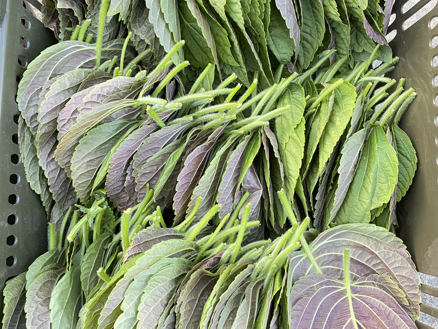 栽培期間中農薬不使用のえごまの葉、肉厚て香りが強い、厳選規格品ではなく、葉っぱの大きさはバラバラです。