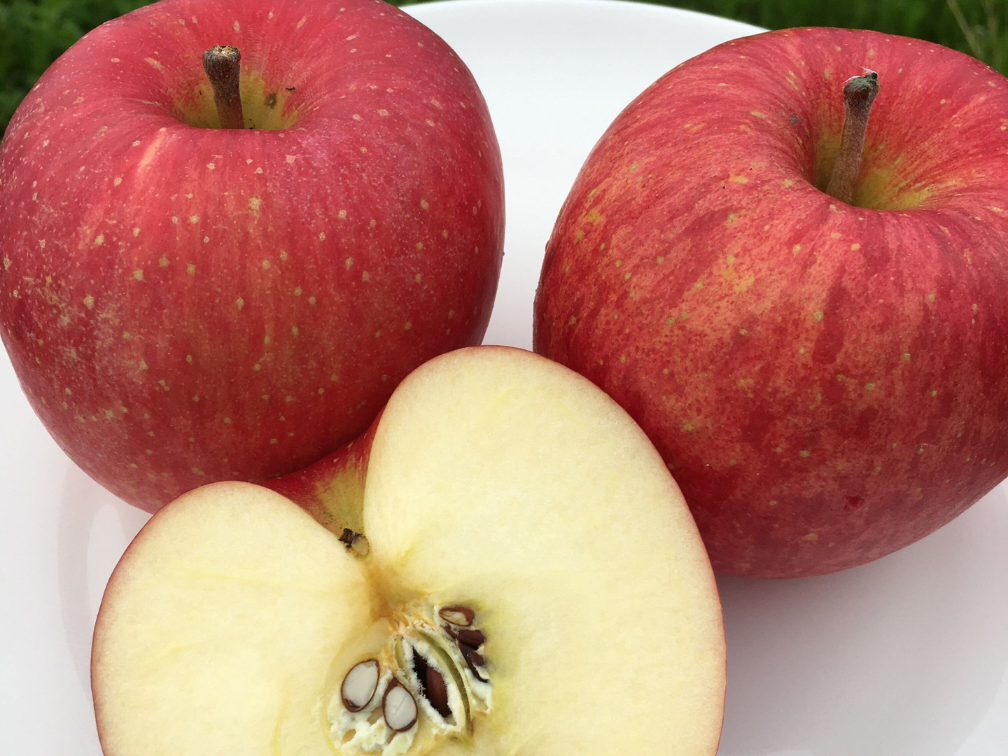 - 鮮やかな赤色とスッキリした甘みの「有袋ふじ」