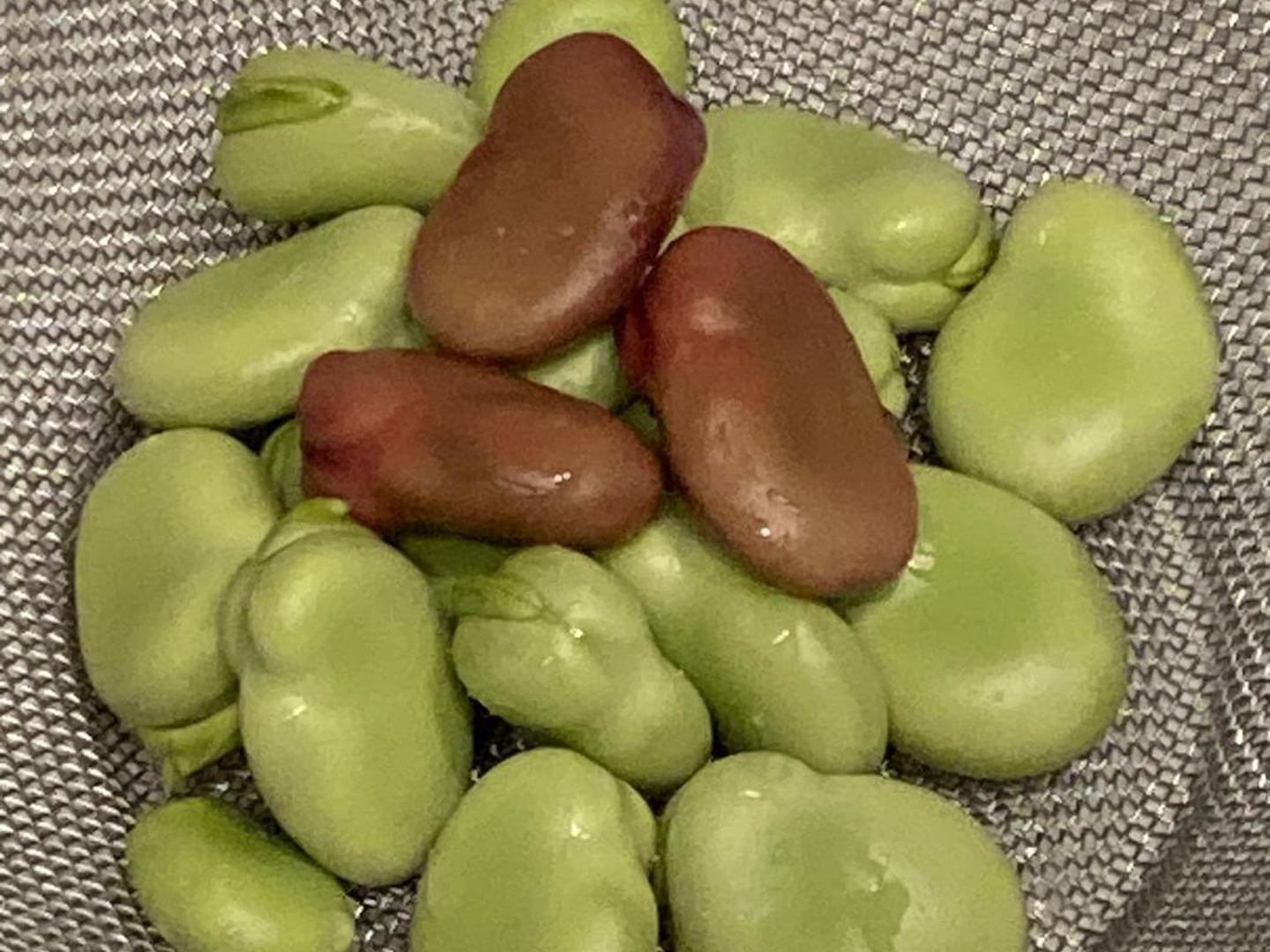 もし紅い蚕豆の【初姫】が混じっていたら、それは当たりくじだと思って下さいませ。(笑)【初姫】は、アントシアニンも豊富なのです。