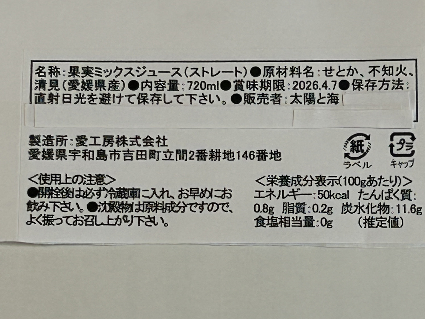 こちらは、せとか・不知火・清見のブレンドジュースになります。