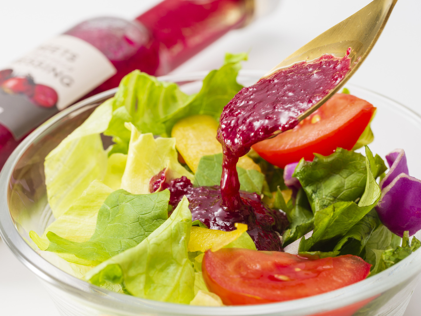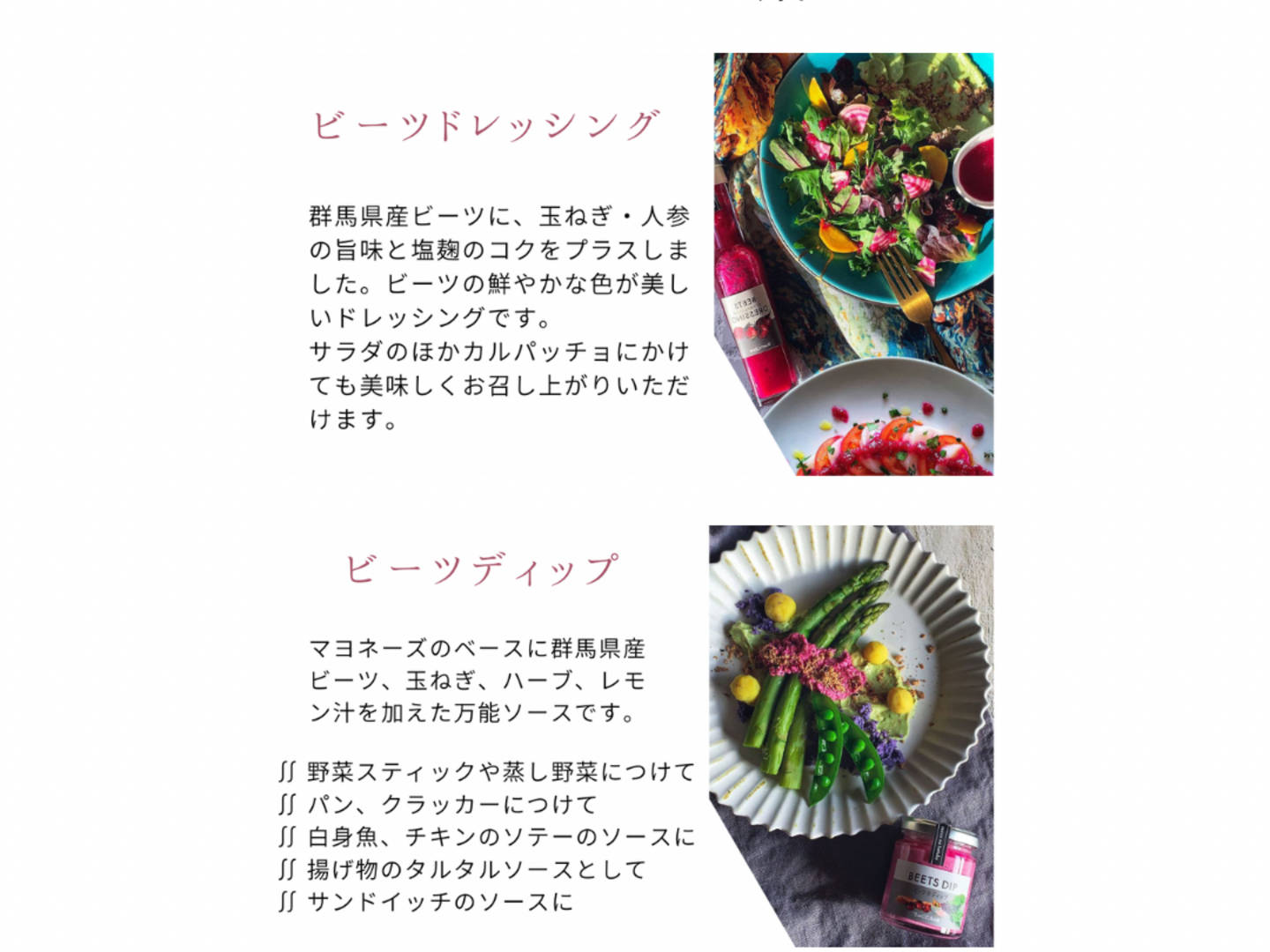 茹でたビーツに玉ねぎ、人参、塩麹を加えた色鮮やかなドレッシング。ビーツの鮮やかな色がサラダに彩りを加えてくれます。