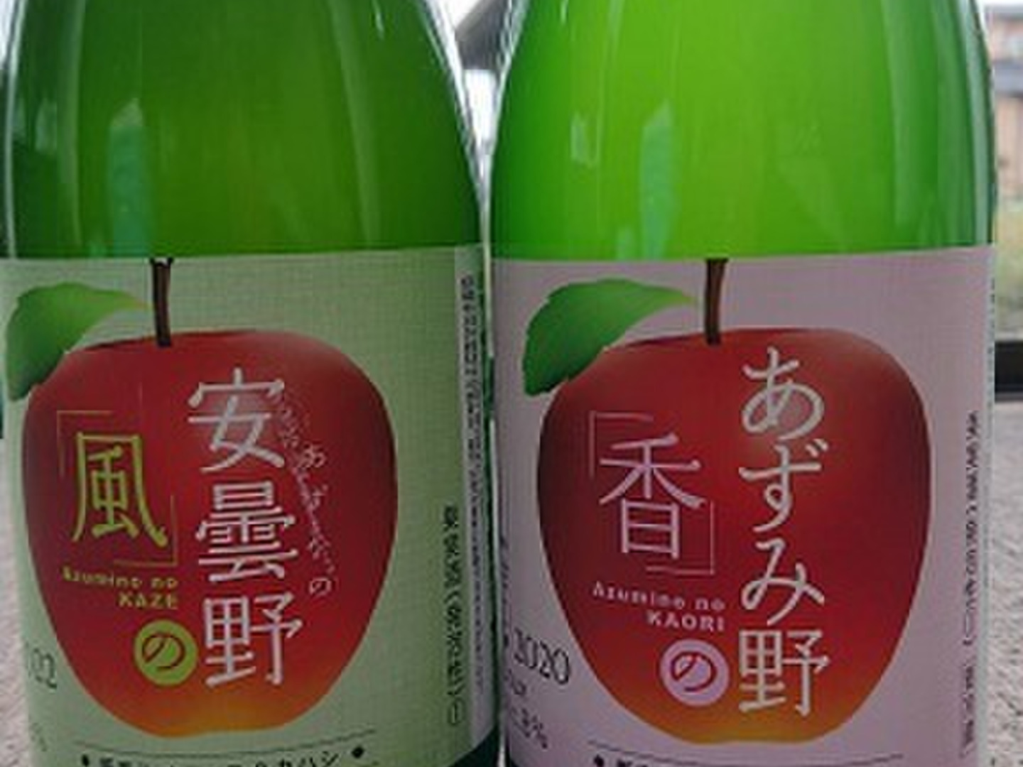 安曇野の林檎で作ったシードル「安曇野の風辛口」と「あずみ野の香甘口」どちらも750ml入り辛口シードルは爽やかな切れ味甘口シードルは爽やかな甘み。どちらも雑味無し。暑い夏に冷えたシードルで1杯