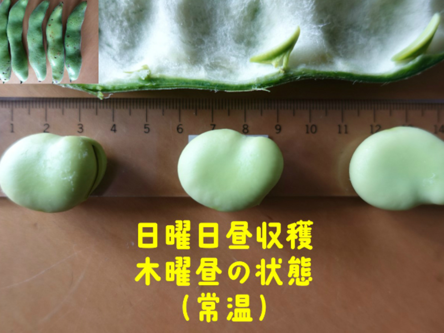 品種の特徴 一般的な一寸ソラマメの種ですが育った環境で180度違いが一目で分かります。