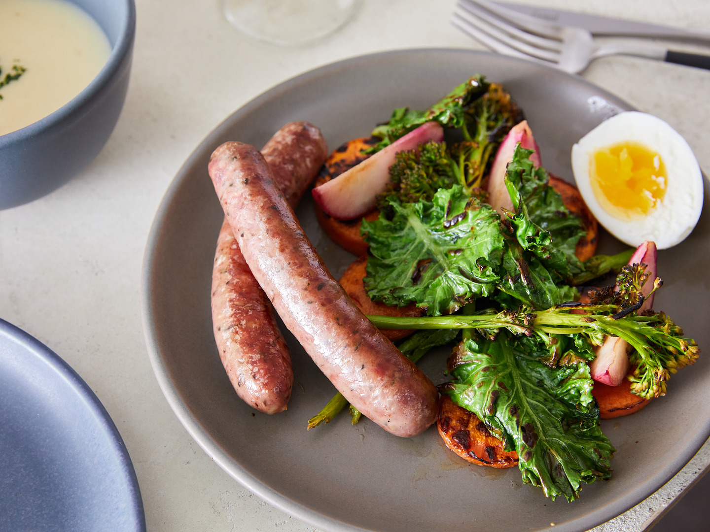 猪野菜ソーセージ:猪肉(千葉県産)、豚脂、季節の野菜、香辛料、食塩、リン酸塩(Na) 、発色剤(亜硝酸Na) (一部に豚肉を含む)※季節に応じた野菜が入ります(6月上旬:にんにくの芽、キャベツなど)