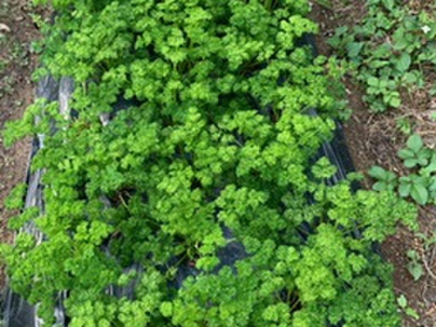 6月6日赤タマネギ、ニンニク、インゲン豆、ナスとミニトマトは最近採れ始めました、パクチーも大きく育っています。